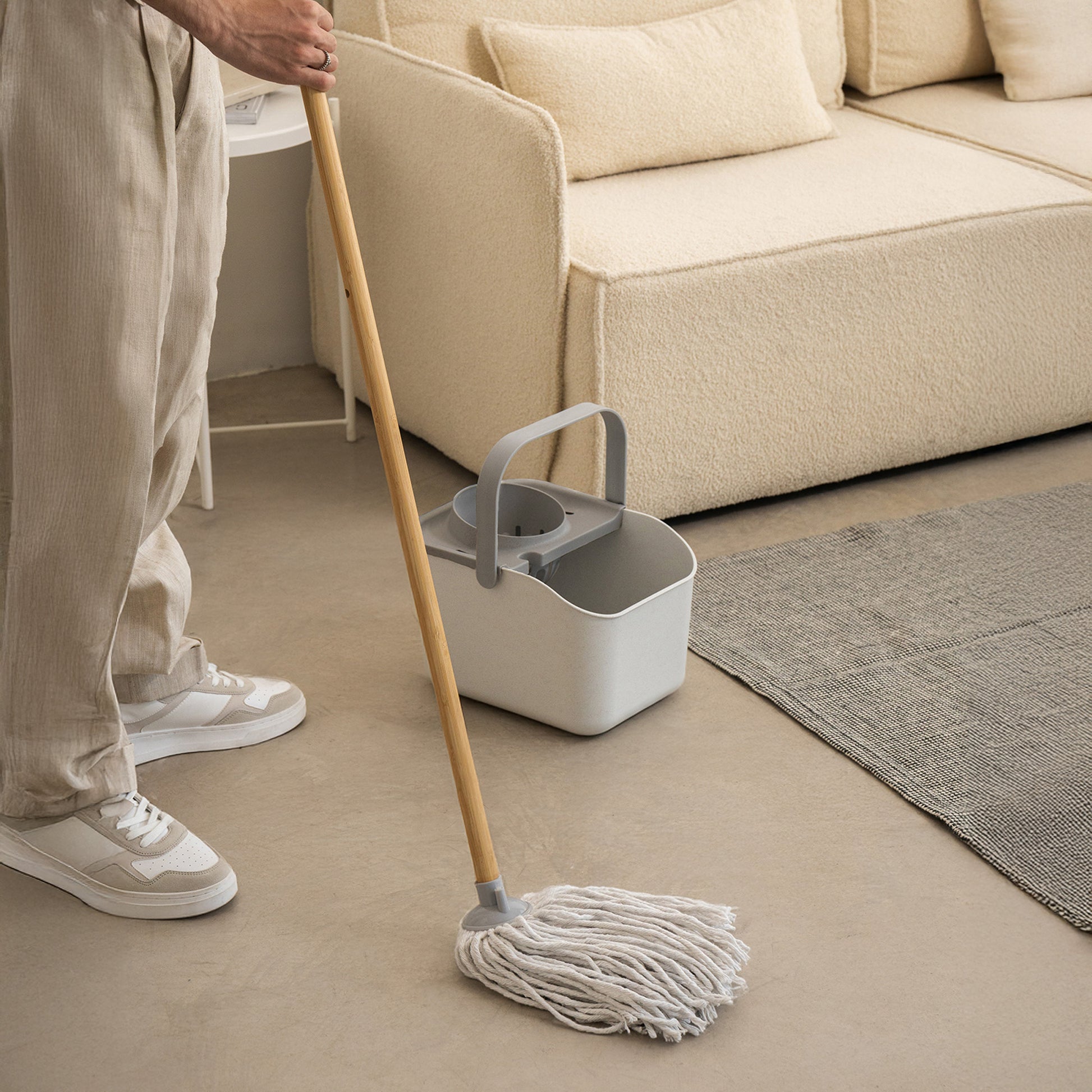 - With a wide diameter, tabs to anchor it to the bucket, and a hole to hook the mop handle, keeping it upright and organized.