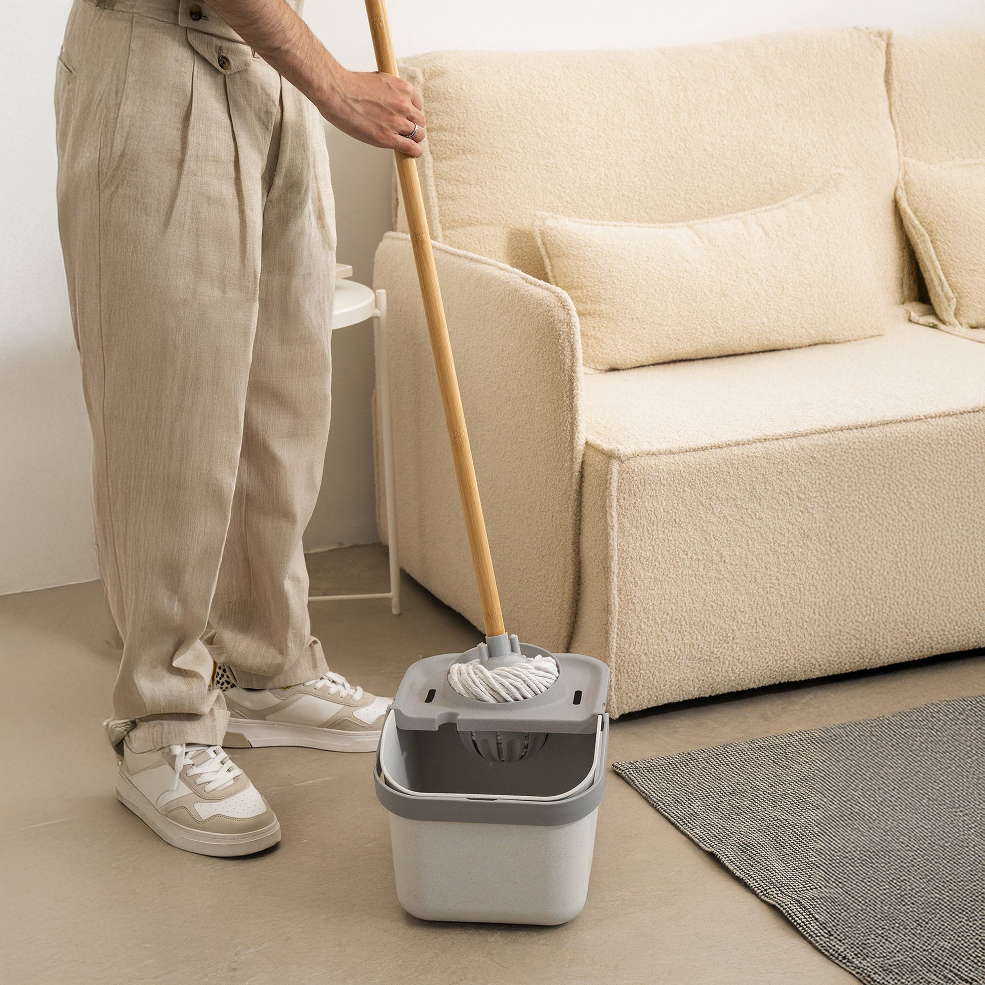 Made from durable materials, this bucket features an integrated wringer that allows for efficient water use. Its 8L size and modern design make it a practical and decorative accessory.
