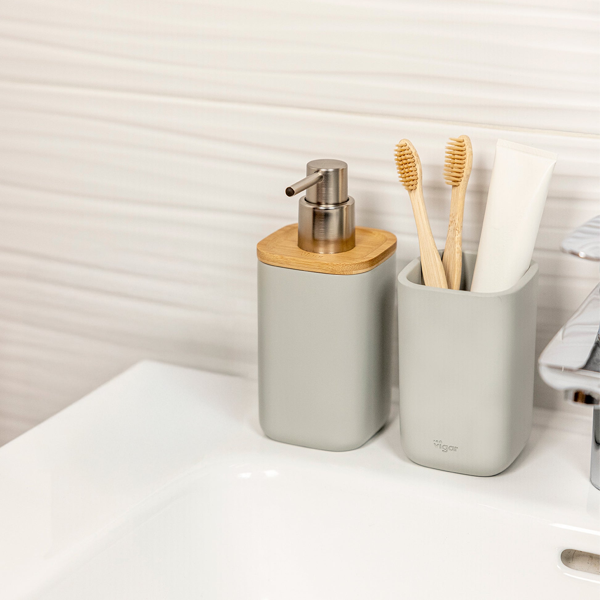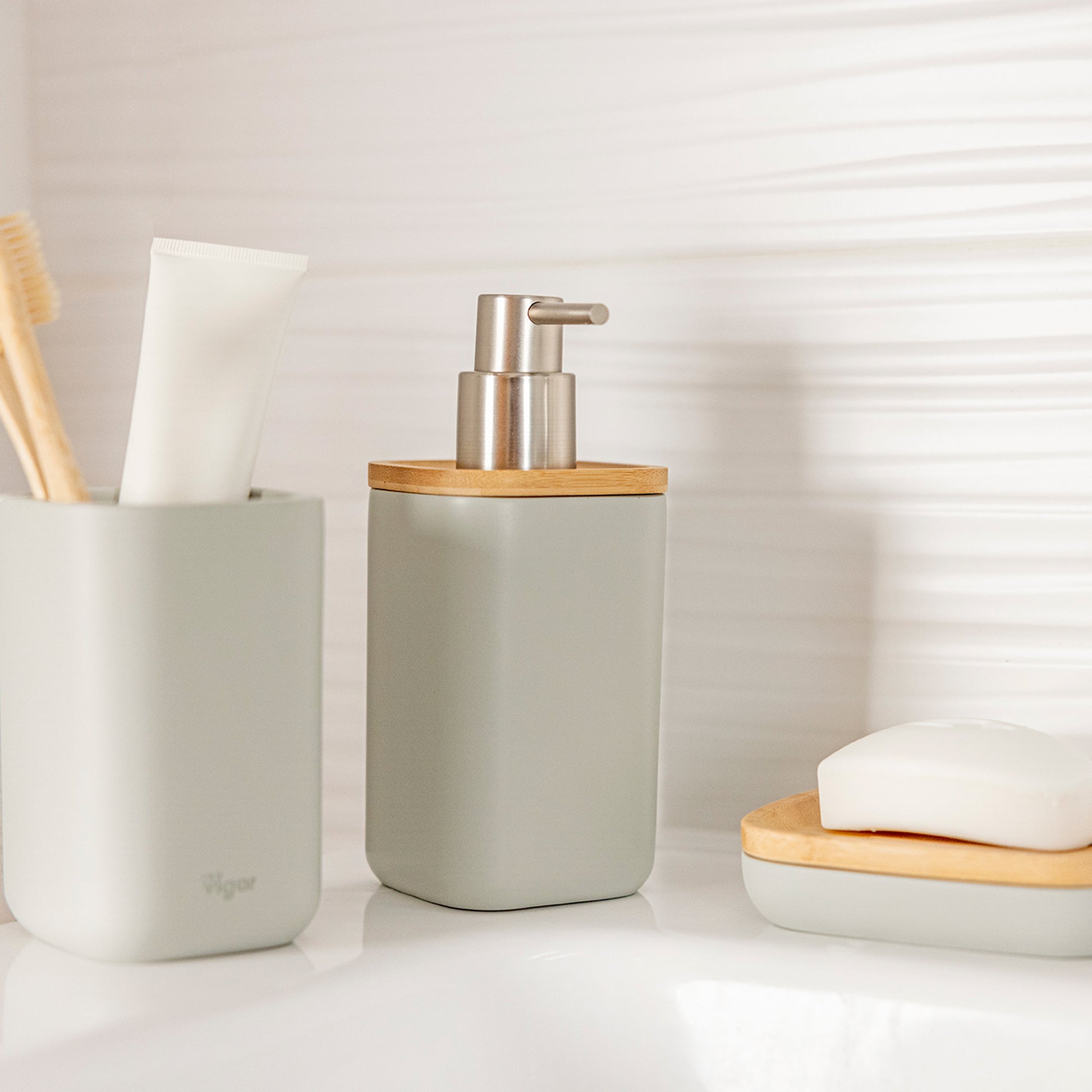 - Soap dispenser with a design of pure lines, elegant and timeless, perfect for any bathroom.