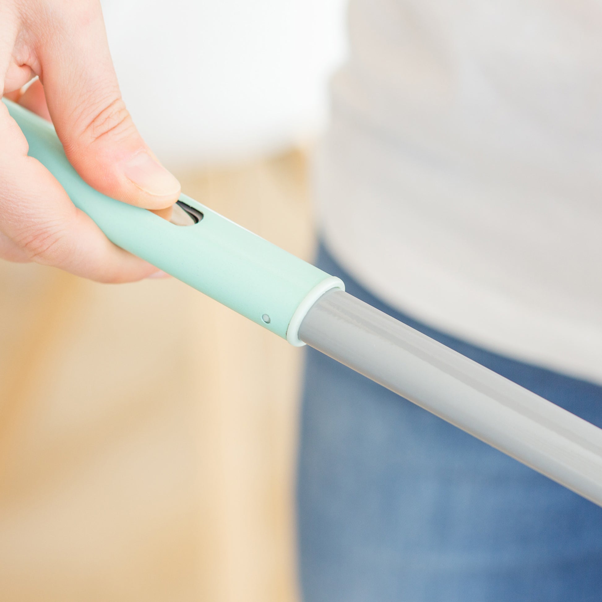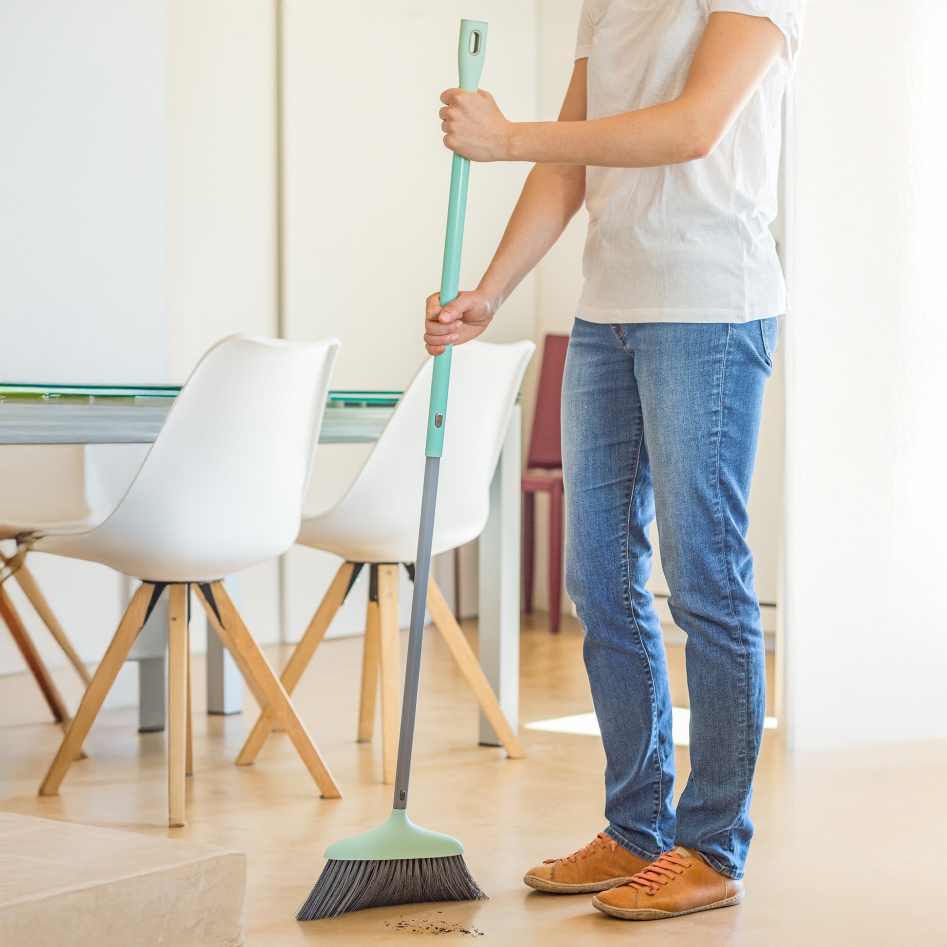 Made from durable materials, this broom has long-lasting bristles that ensure effective sweeping. Its extendable handle and turquoise color add a fresh and modern touch, making cleaning easier in any space.