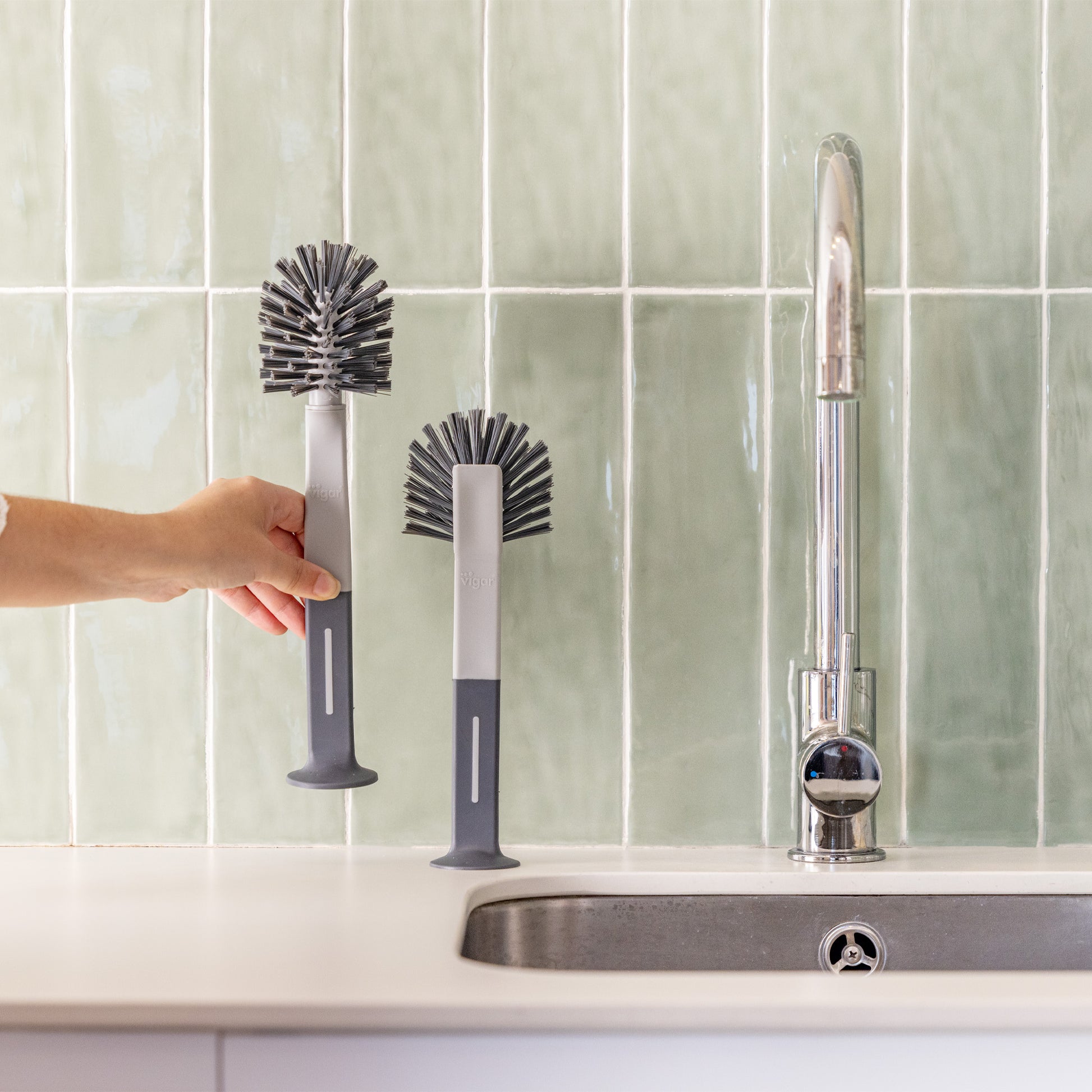 - Make your sink work for you with this Essentials pack of 2 brushes: one designed for tall bottles and glasses, and another ideal for plates with tough dirt.