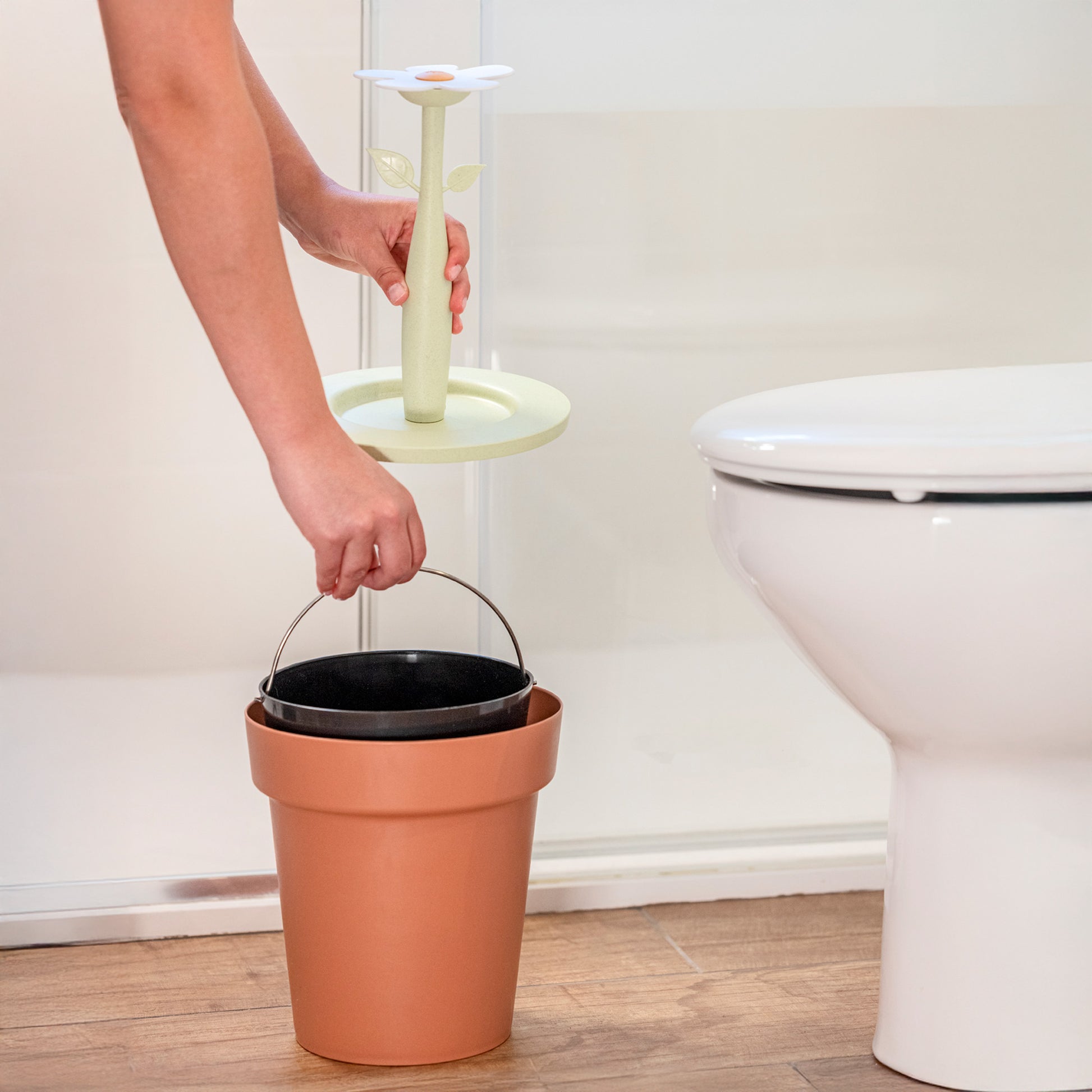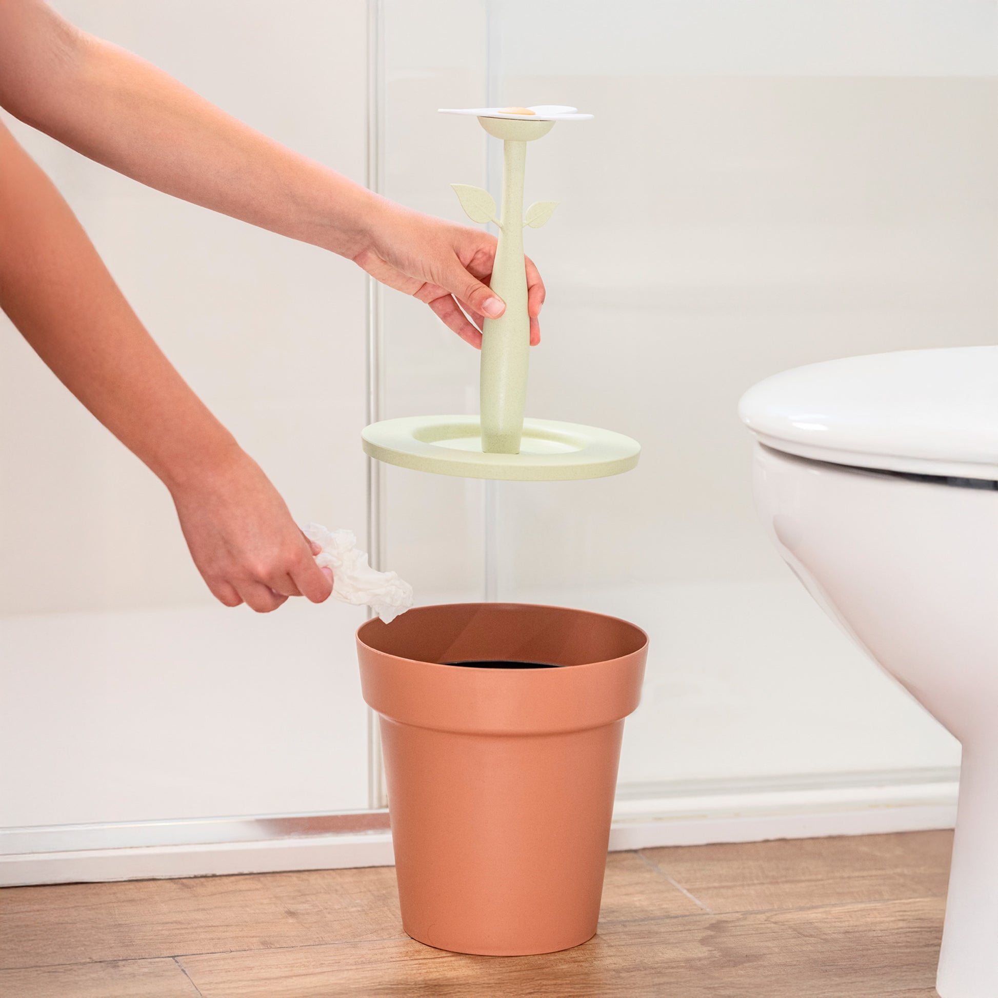 - Bathroom bin with flower-shaped lid and inner bucket, ideal for keeping your space tidy and clean.