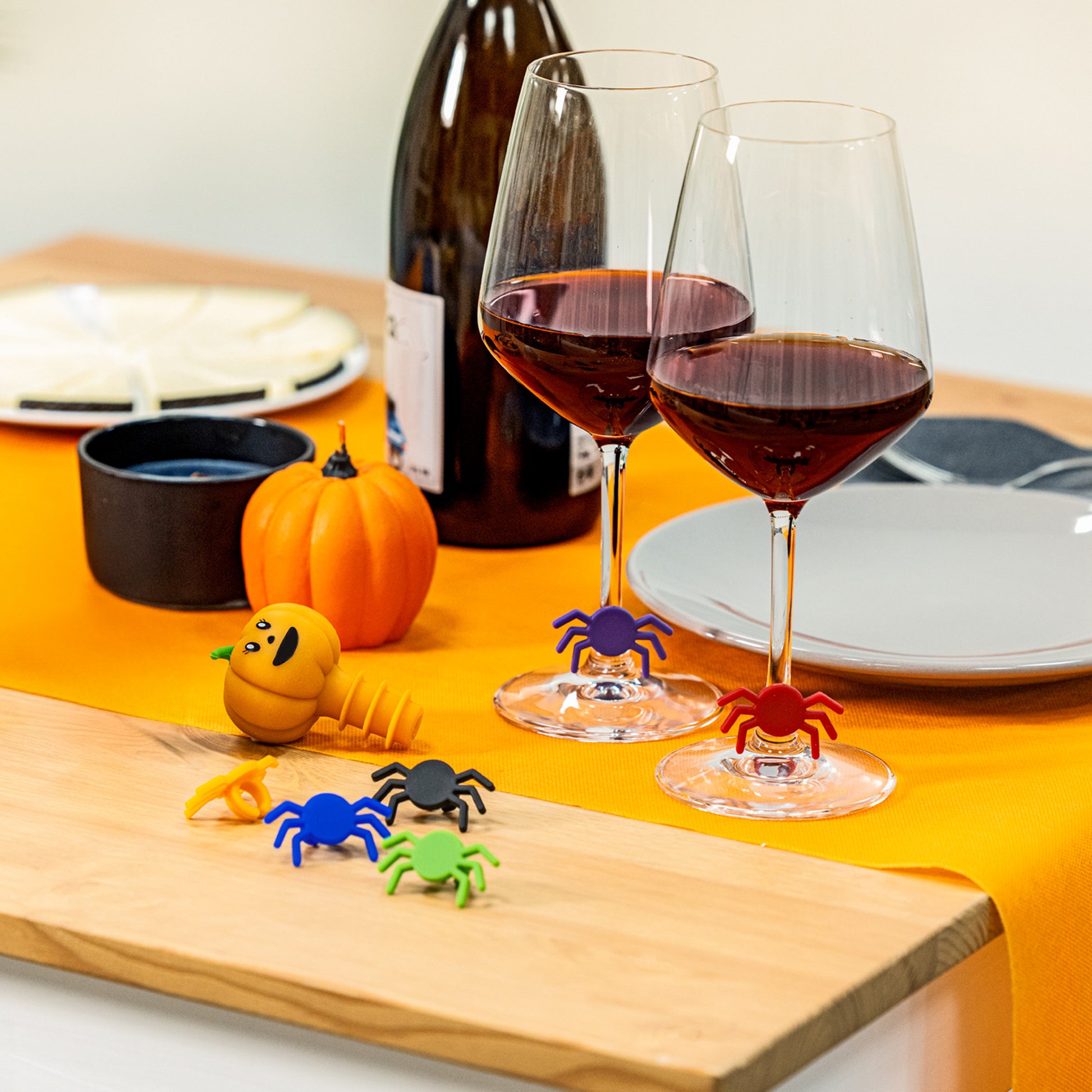 - Consists of 1 Halloween stopper with pumpkin design and 6 high-quality silicone spider wine glass markers, perfect for adding a spooky and festive touch to your drinks.