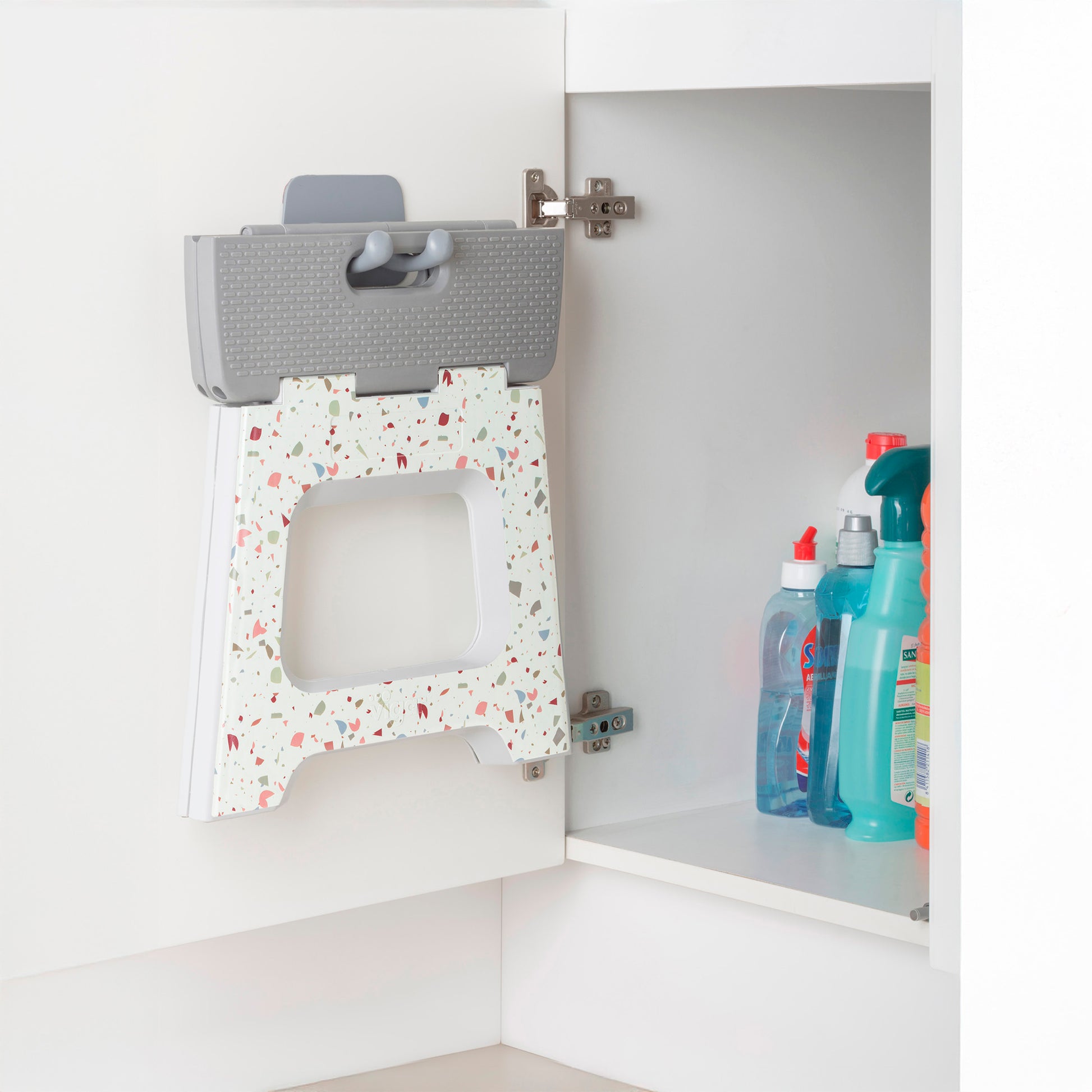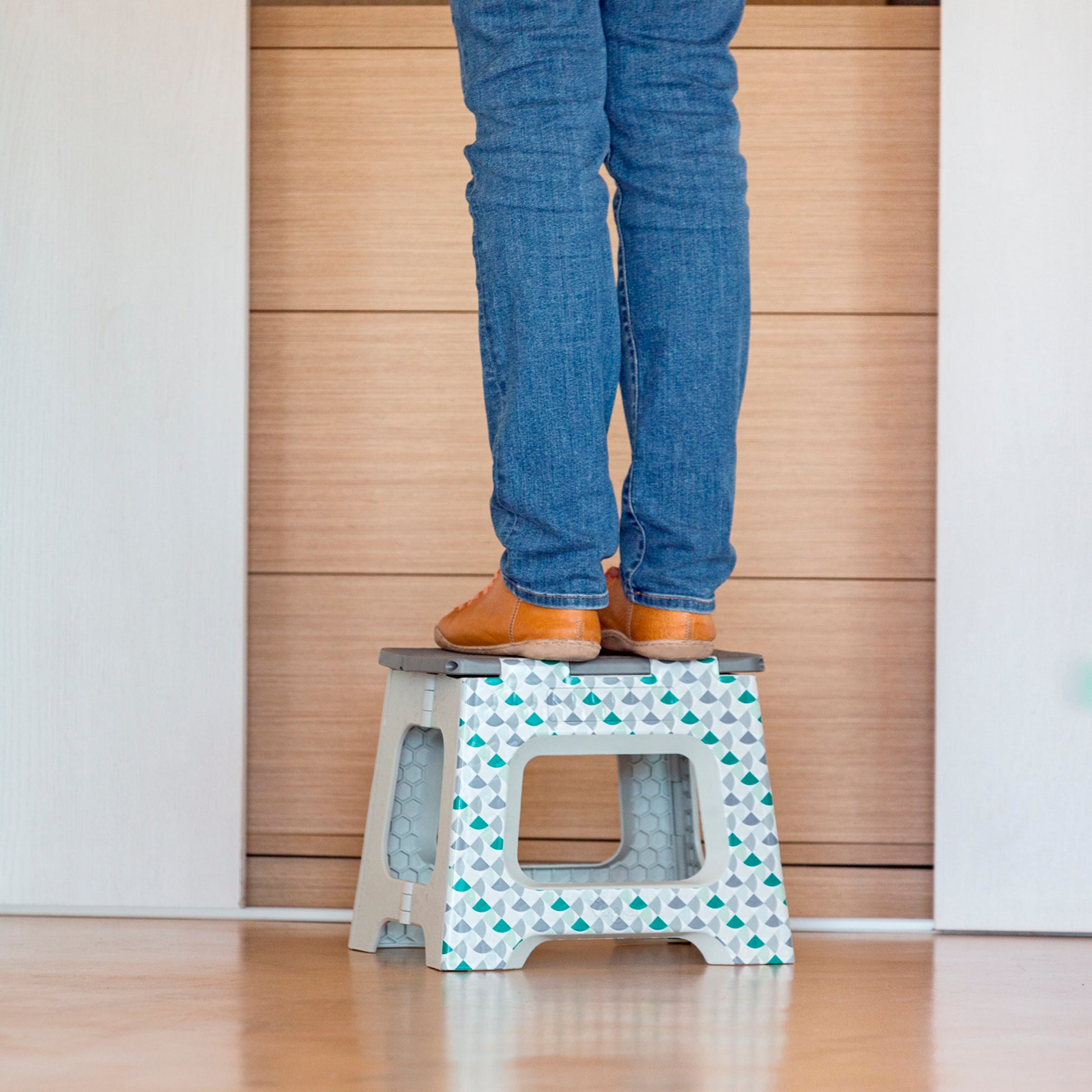 - Folds and unfolds with a simple gesture, practical for reaching small heights in the house.