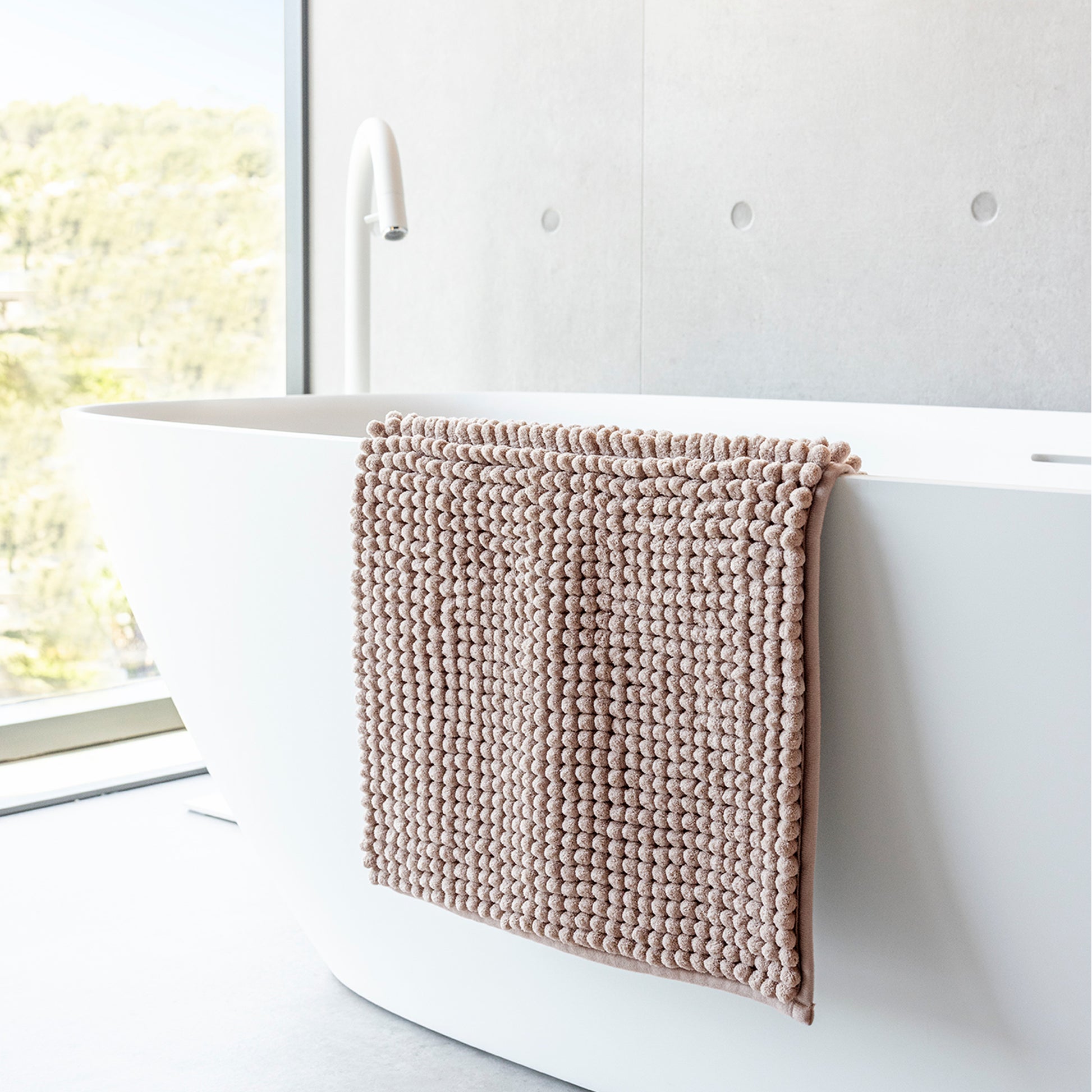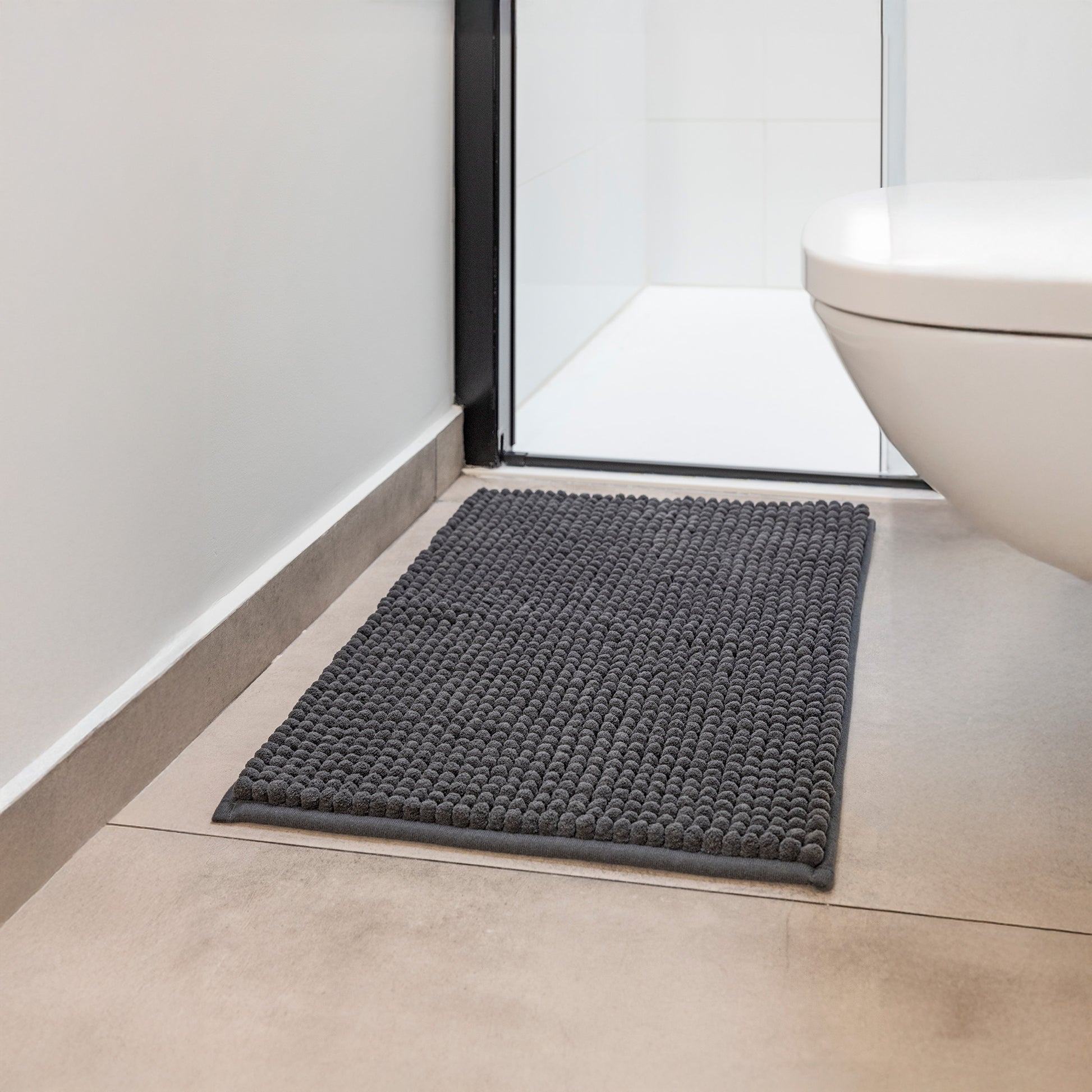 - Tapis de bain en polyester, qui ajoute une touche décorative et pratique à votre salle de bain.