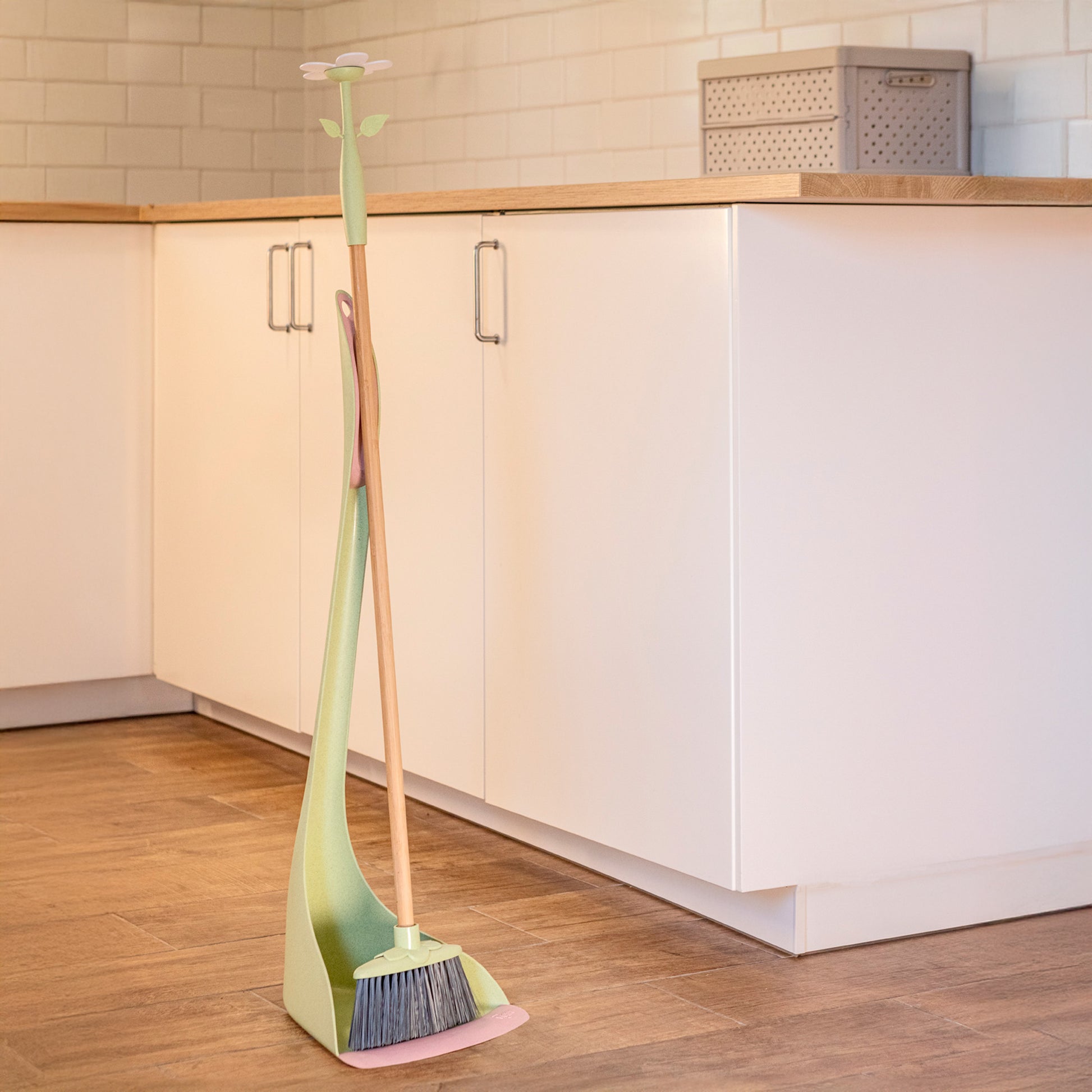 - Ramasse-poussière avec pince pour balais, facilitant son rangement et améliorant l'organisation.
