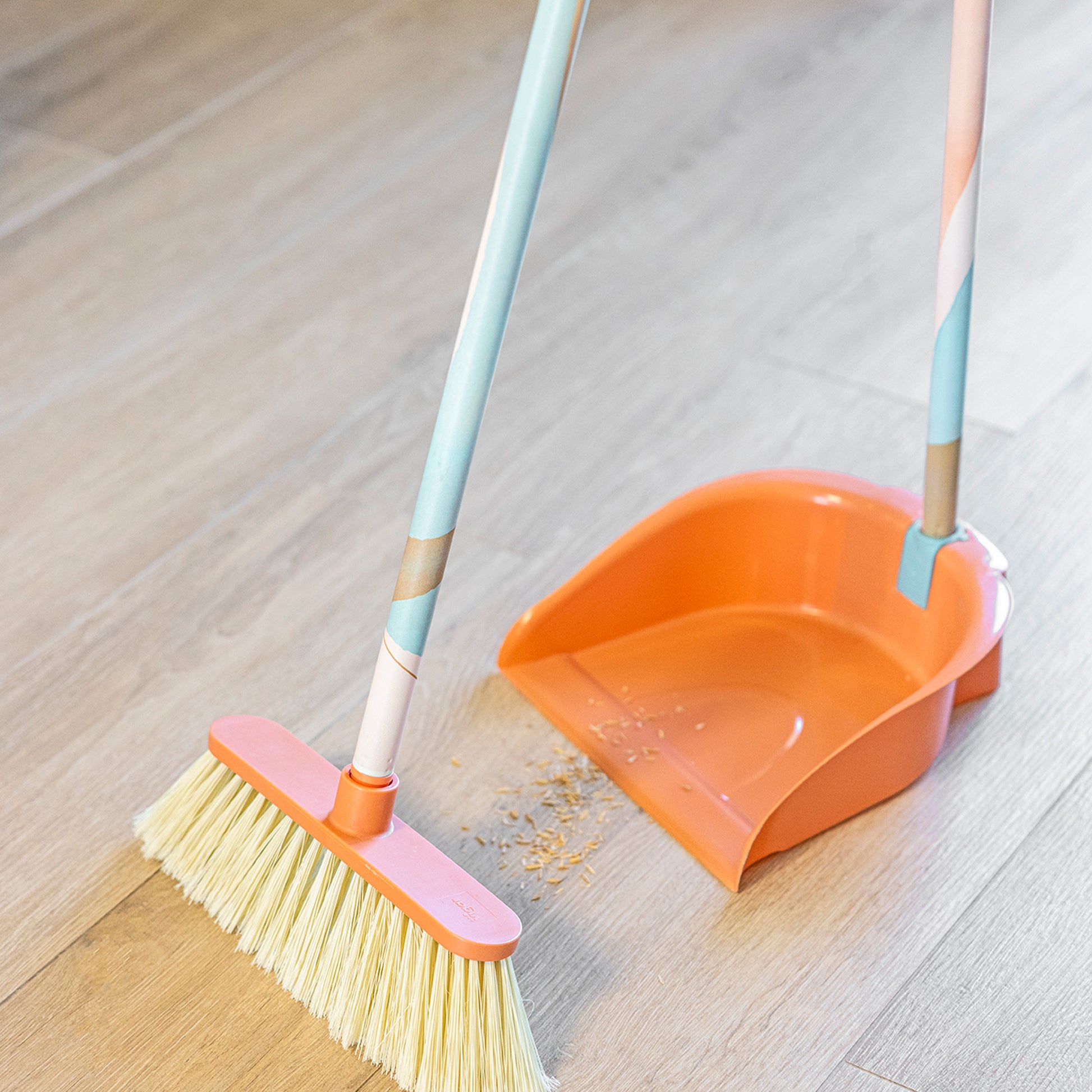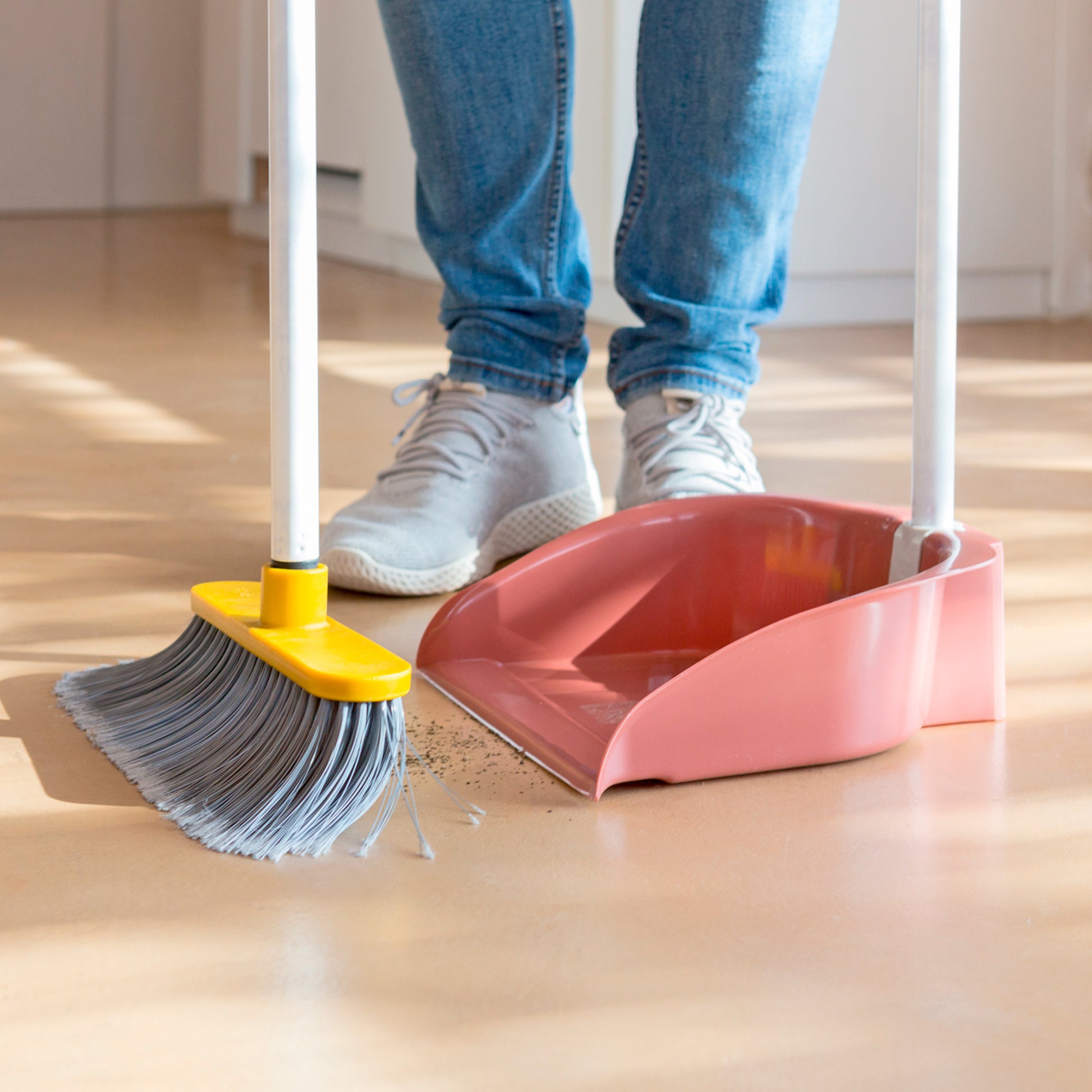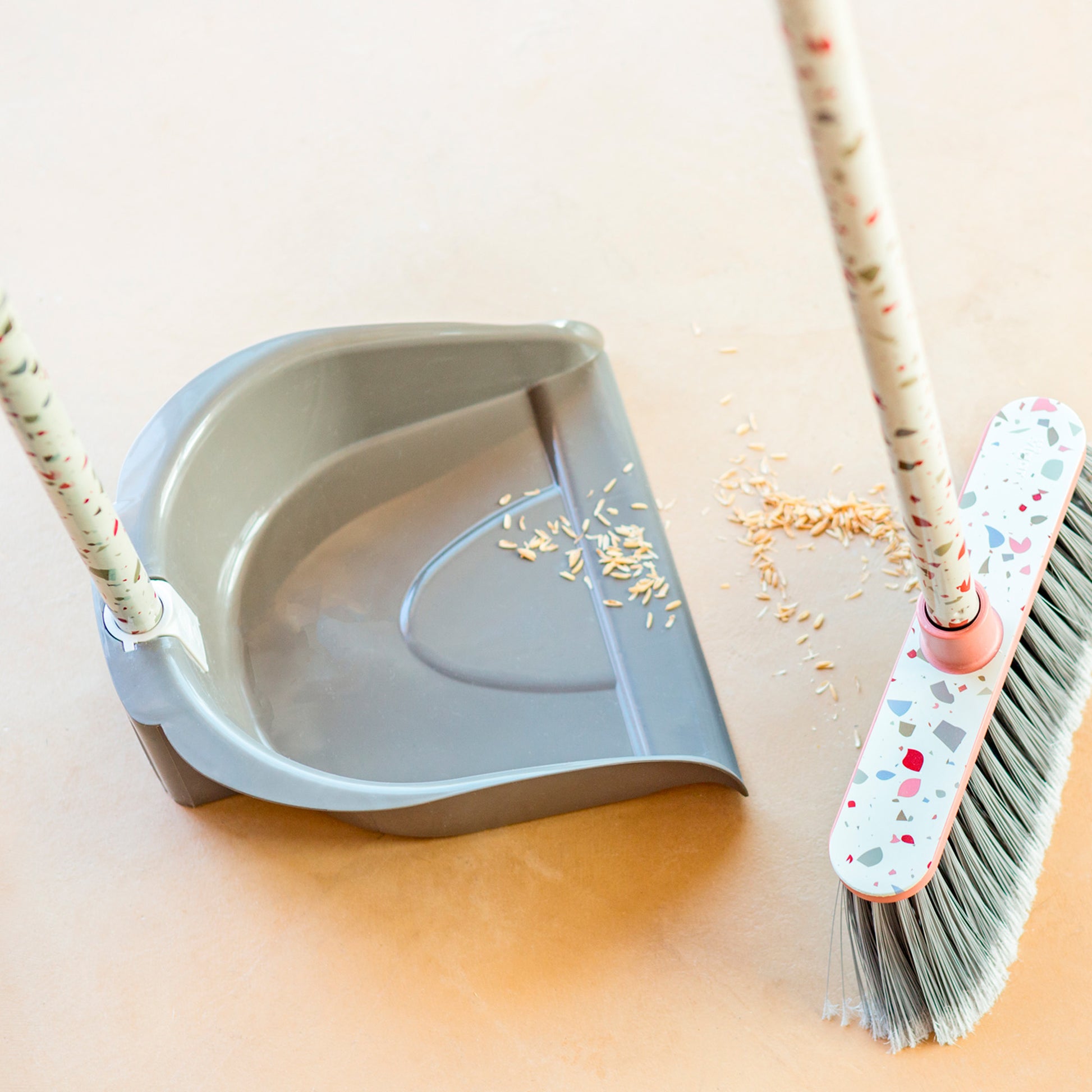 - Ramasse-poussière pliable avec pince pour balais, facilitant son rangement et son organisation.