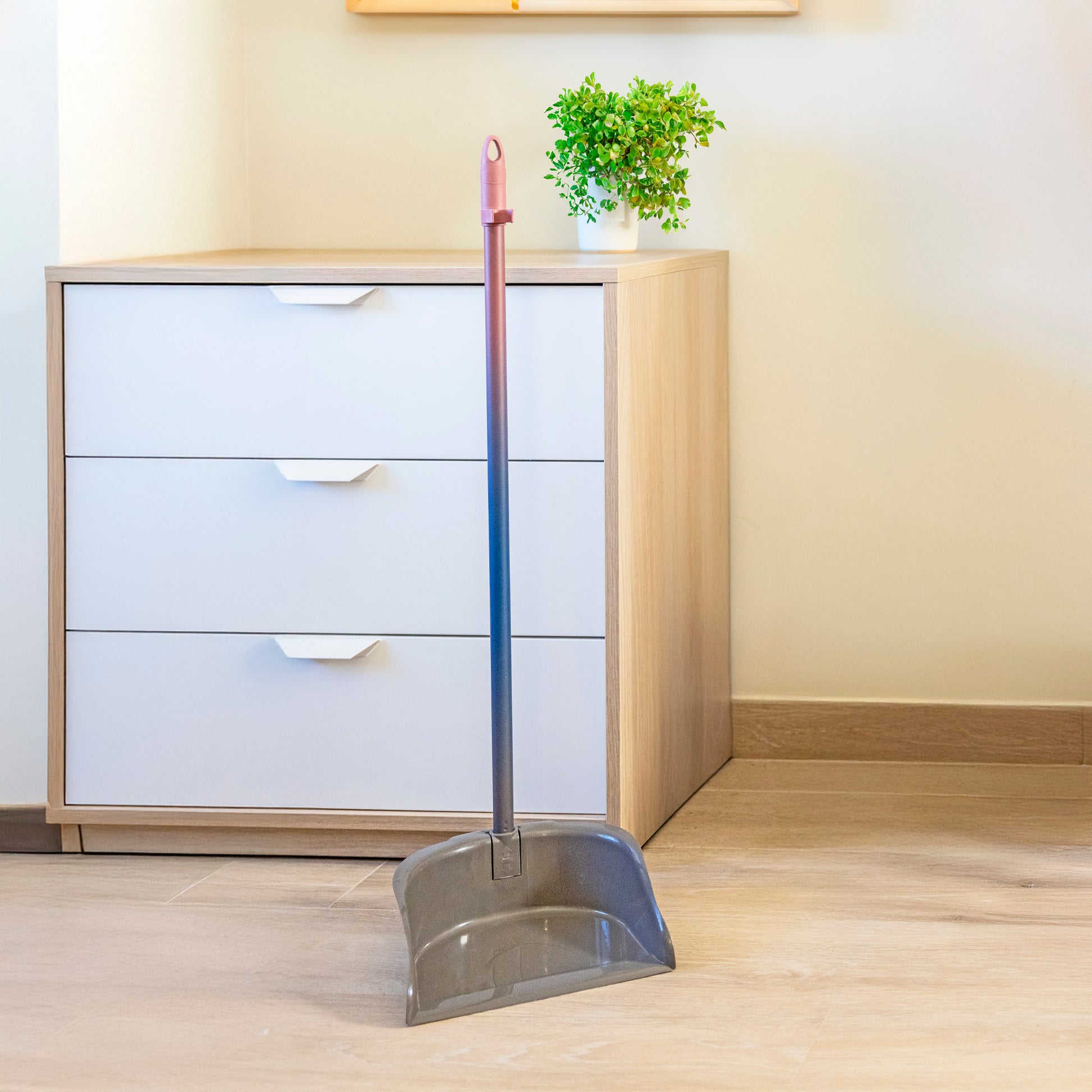 Fabriqué en matériaux durables, ce ramasse-poussière est équipé d'un manche pliable qui facilite sa manipulation et son rangement. Sa structure robuste assure une collecte complète, tandis que son design anti-basculement évite les déversements, rendant le nettoyage plus confortable.