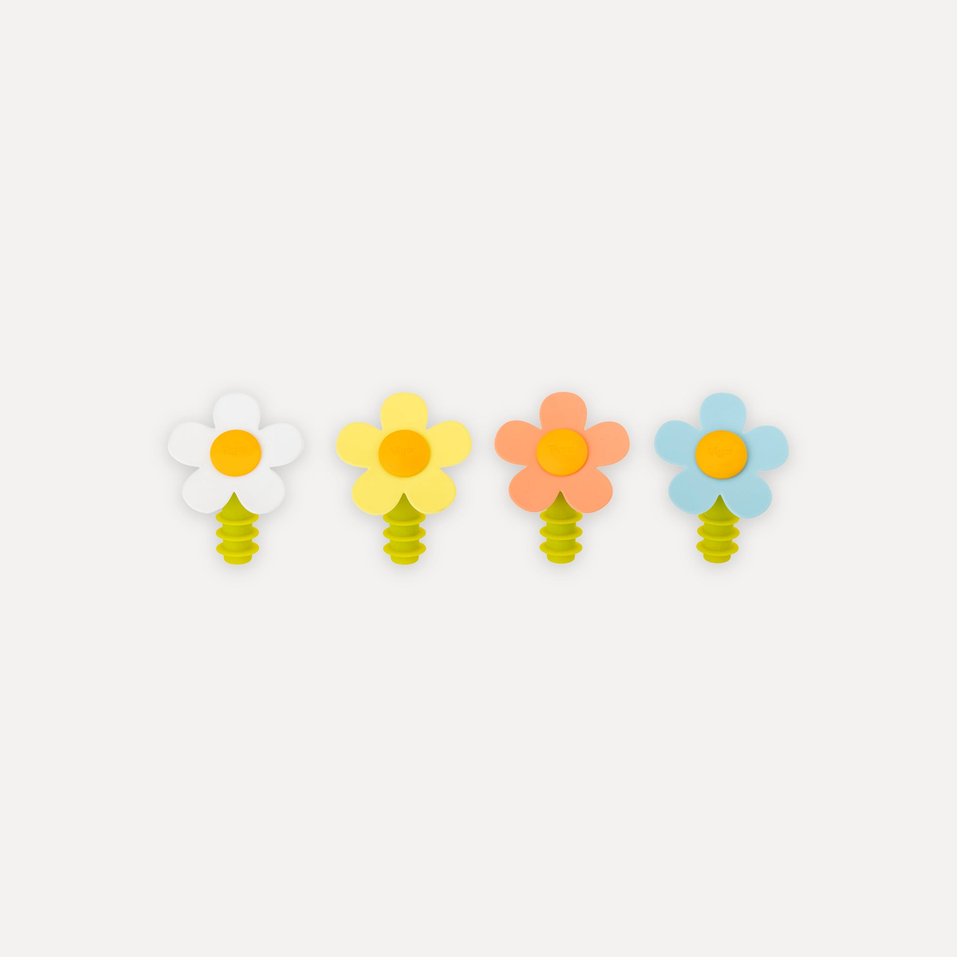 - Set 4 tapones reutilizables de silicona con diseño Flower Power, coloridos y funcionales.