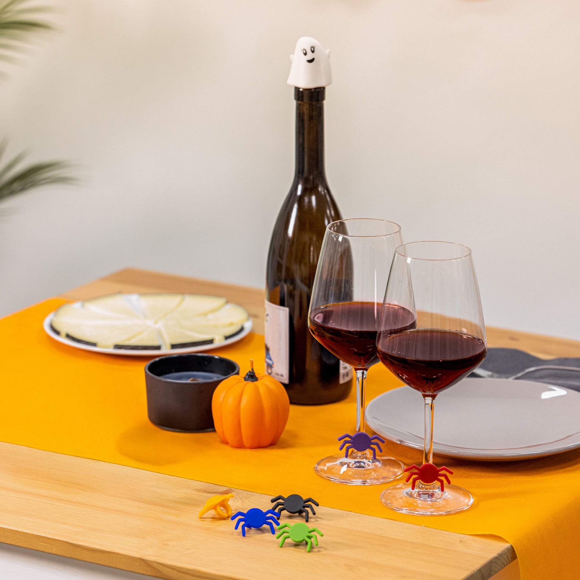 Set de bouchons fantômes en silicone et 6 marque-verres araignée