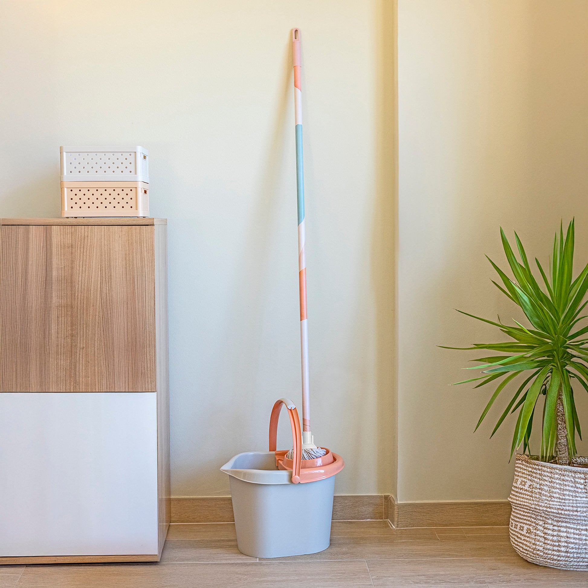 - Set de nettoyage avec mop et seau d'une capacité de 12L, idéal pour garder votre maison propre de manière efficace.