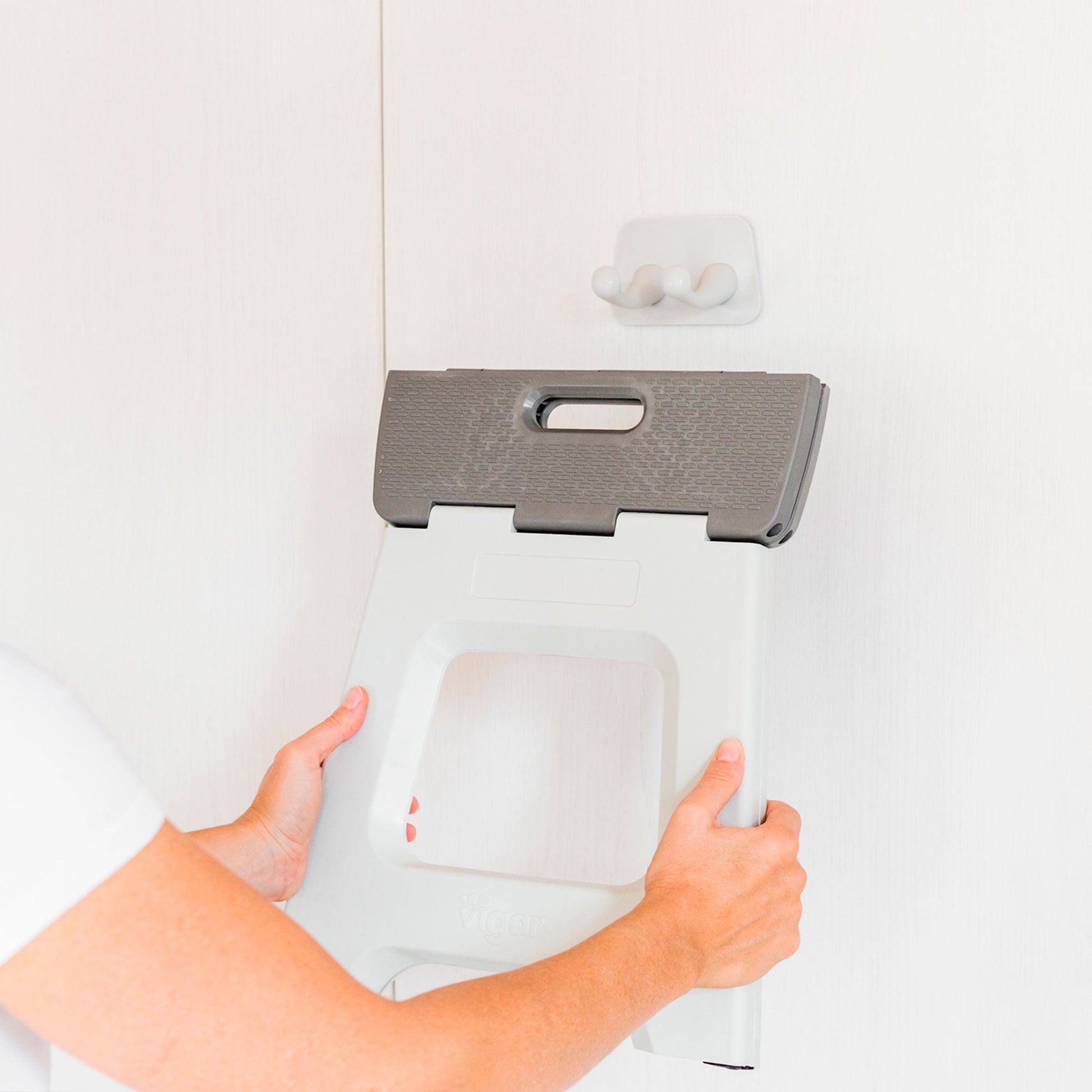 Le tabouret, fabriqué en plastique résistant, supporte jusqu'à 150 kg et se plie facilement pour un rangement compact. Le crochet adhésif est facile à installer et permet de suspendre de petits objets comme des serviettes ou des sacs. Un ensemble pratique et polyvalent pour un usage quotidien à la maison.