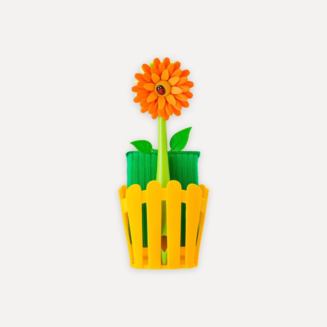 Spazzola lavapiatti dal design sostenibile con vaso