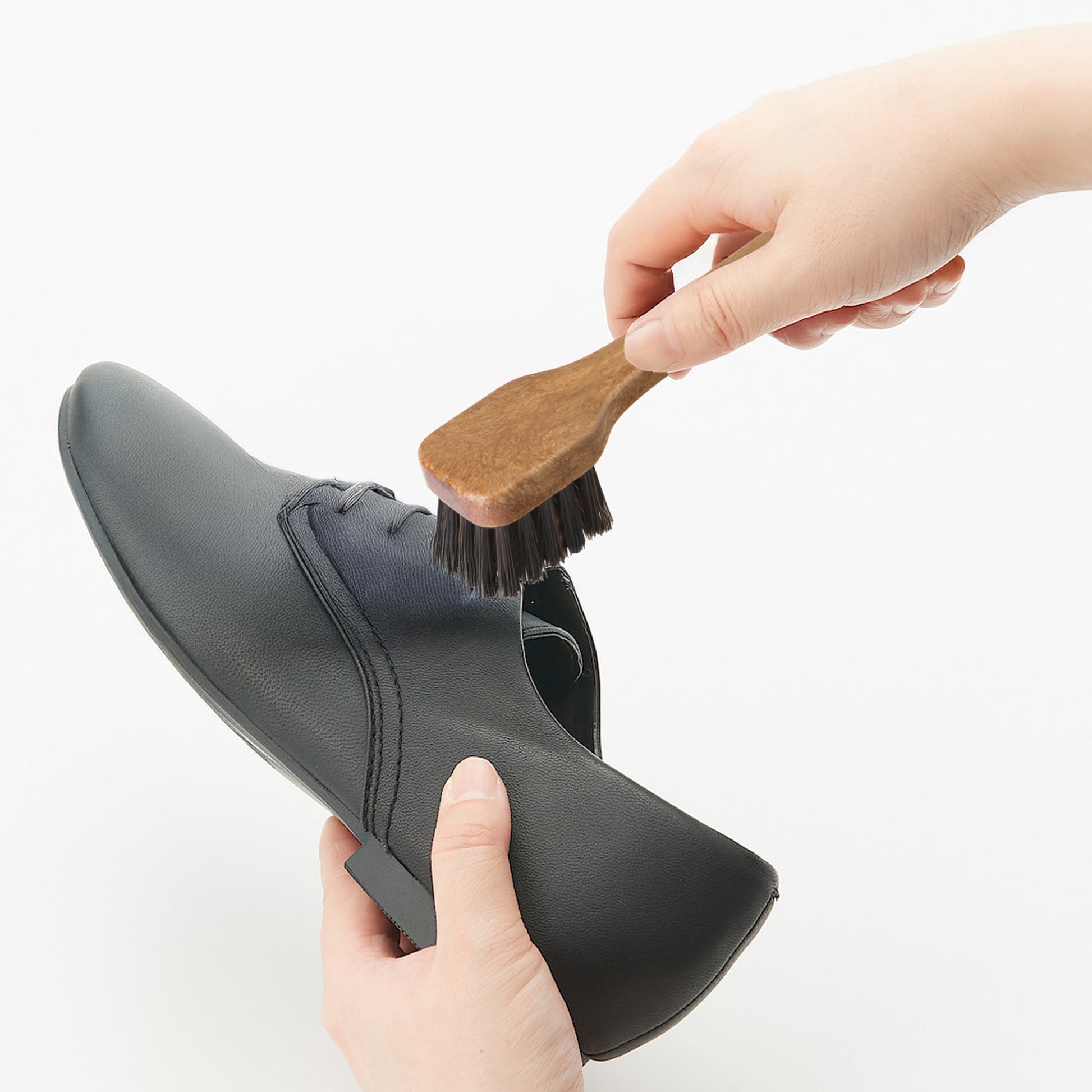 Realizzata con setole morbide ma resistenti, questa spazzola assicura un risultato perfetto senza danneggiare la pelle. Il suo manico laccato offre una presa comoda e la sua dimensione compatta facilita l'uso e la conservazione. Ideale per chi apprezza la cura delle calzature e cerca uno strumento efficiente.