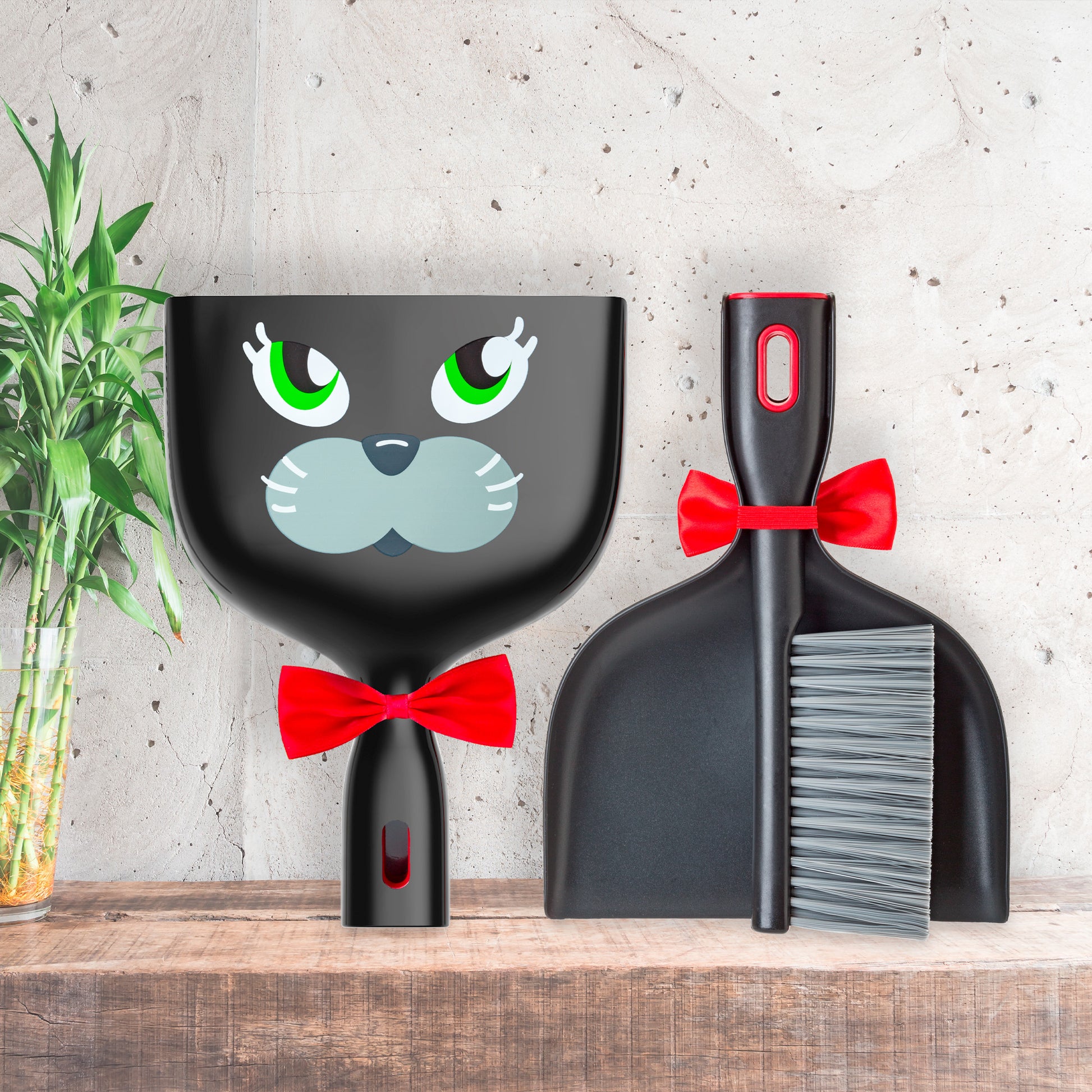 Scopa e paletta a mano design gatto