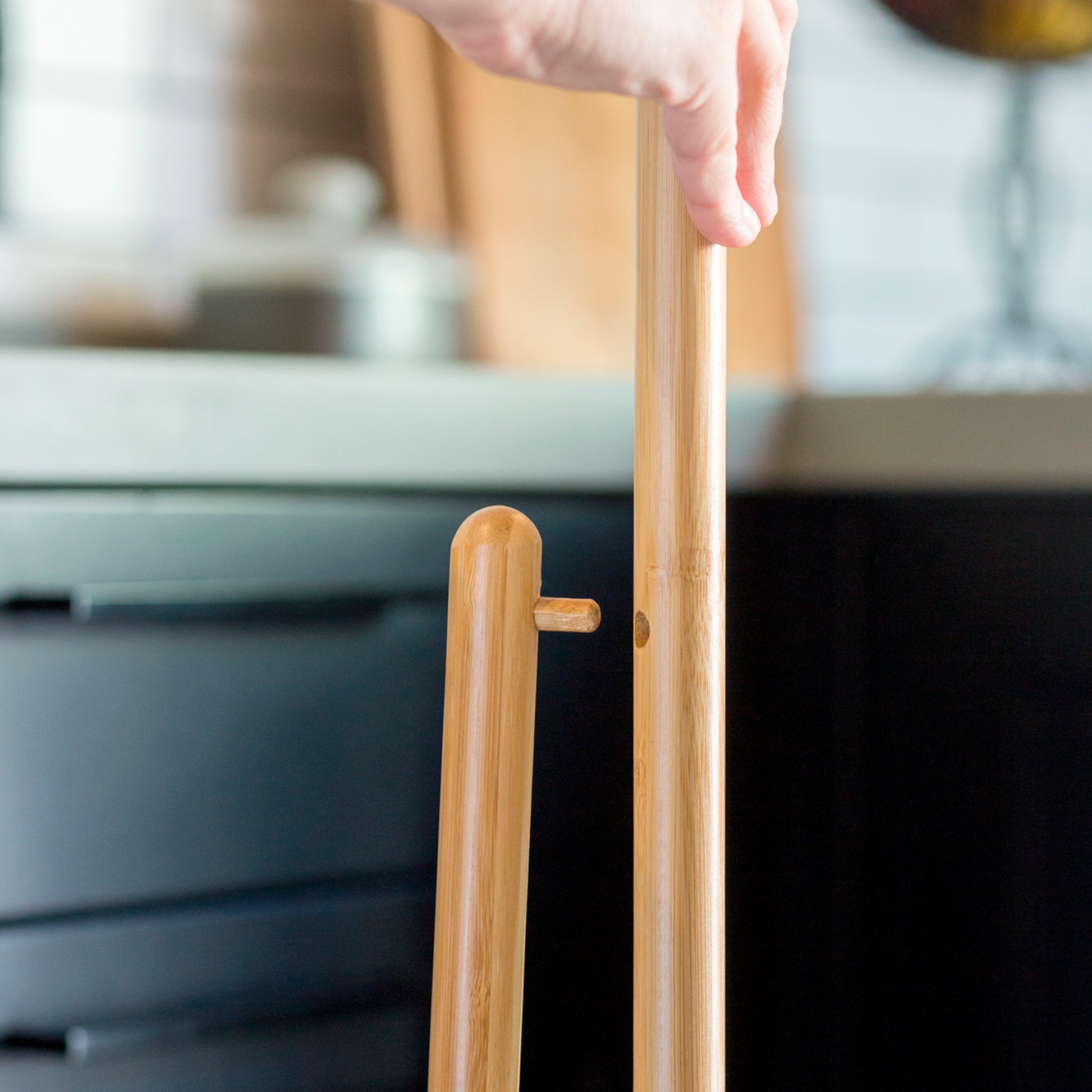 - Asta di bambù naturale lavorata, con filettatura universale, che offre resistenza e durata.