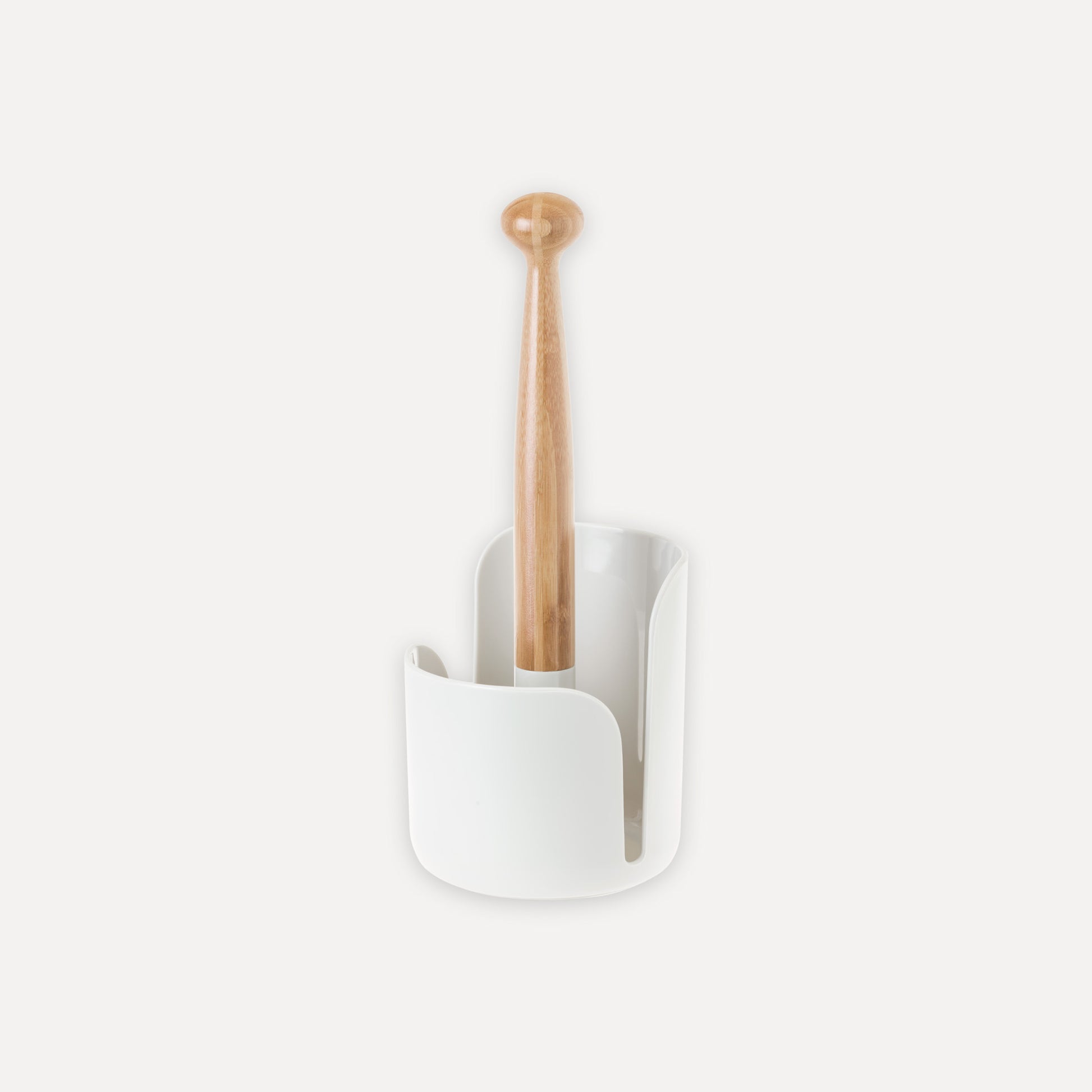 Il portarotolo è realizzato con una base stabile e un supporto centrale resistente, garantendo che la carta rimanga al suo posto durante l'uso. Il suo design minimalista e la finitura in bambù naturale lo rendono un'opzione ideale per cucine moderne e sostenibili. Facile da pulire e durevole, è un complemento indispensabile per ogni casa.