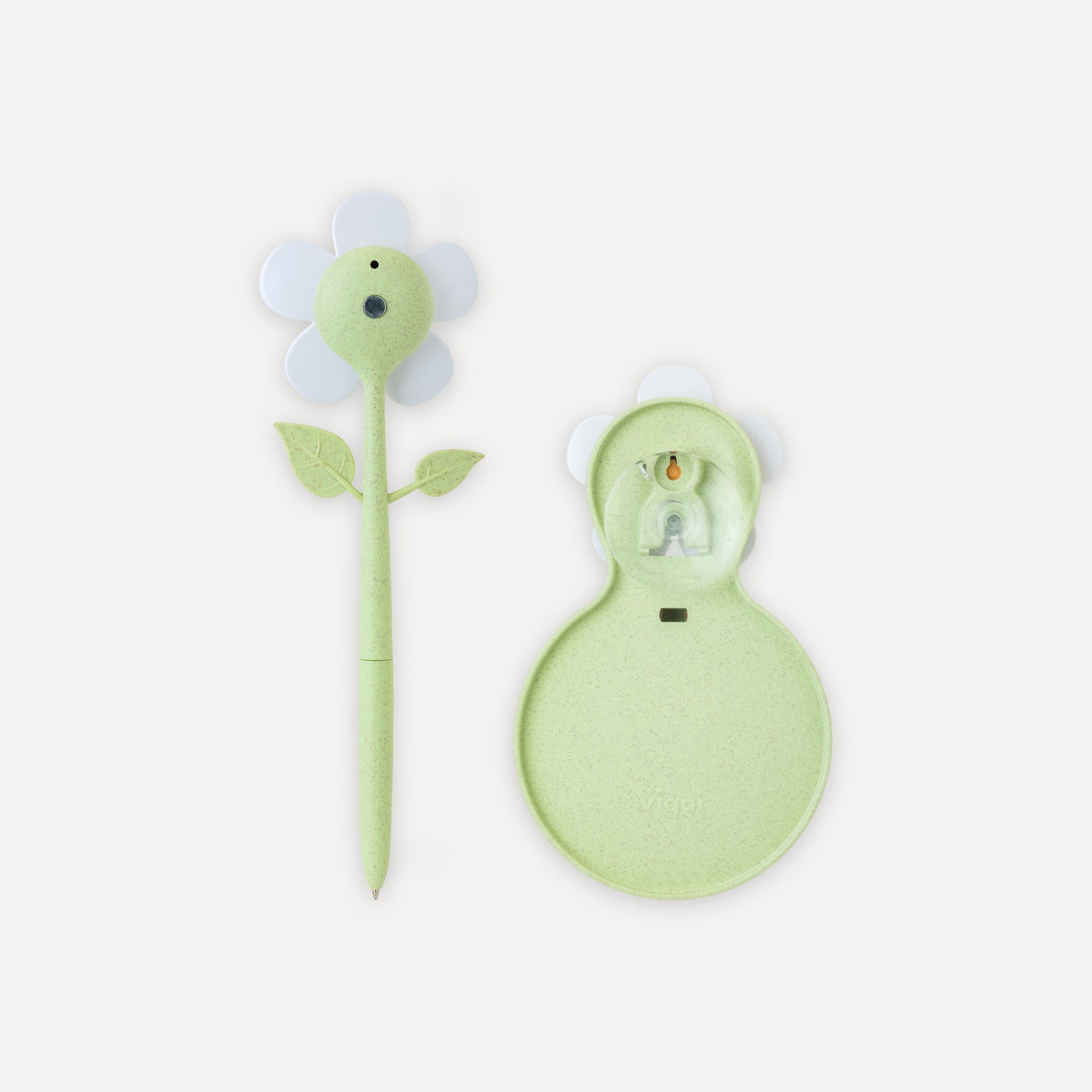 - Penna a forma di fiore, con un magnete nella parte posteriore che permette di attaccarla su qualsiasi superficie metallica, offrendo comodità e versatilità.