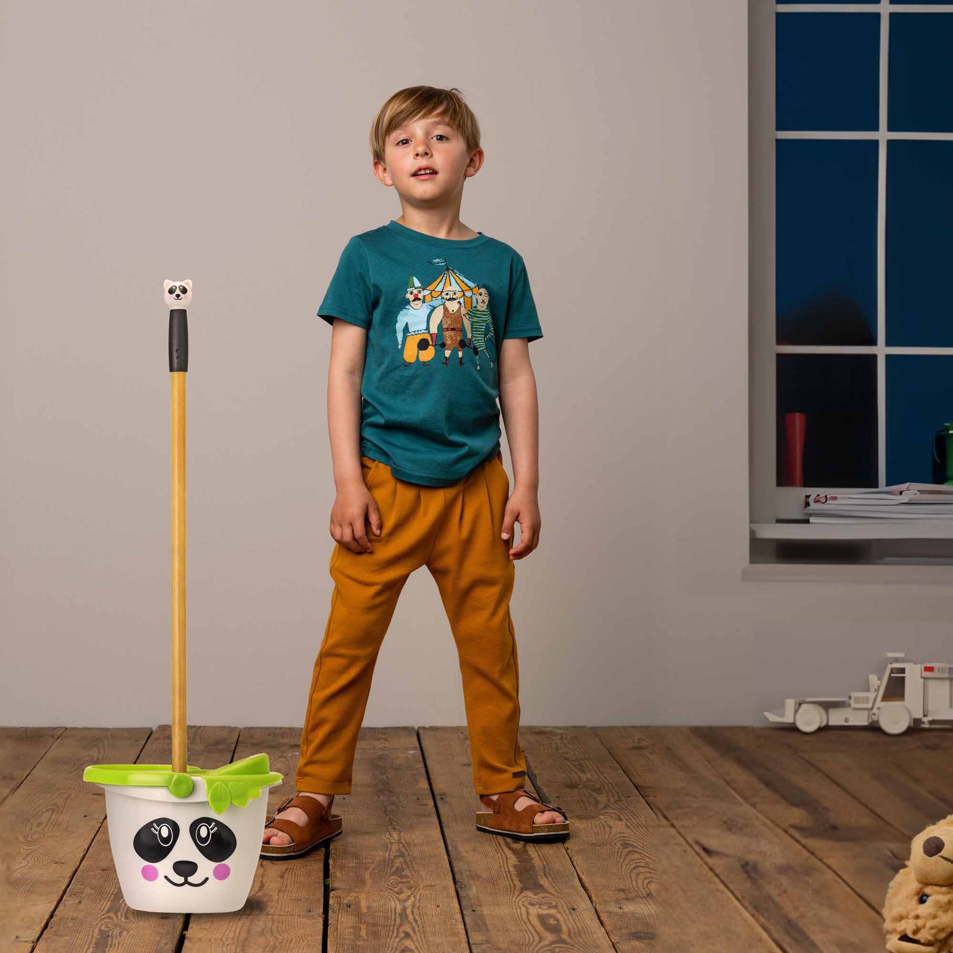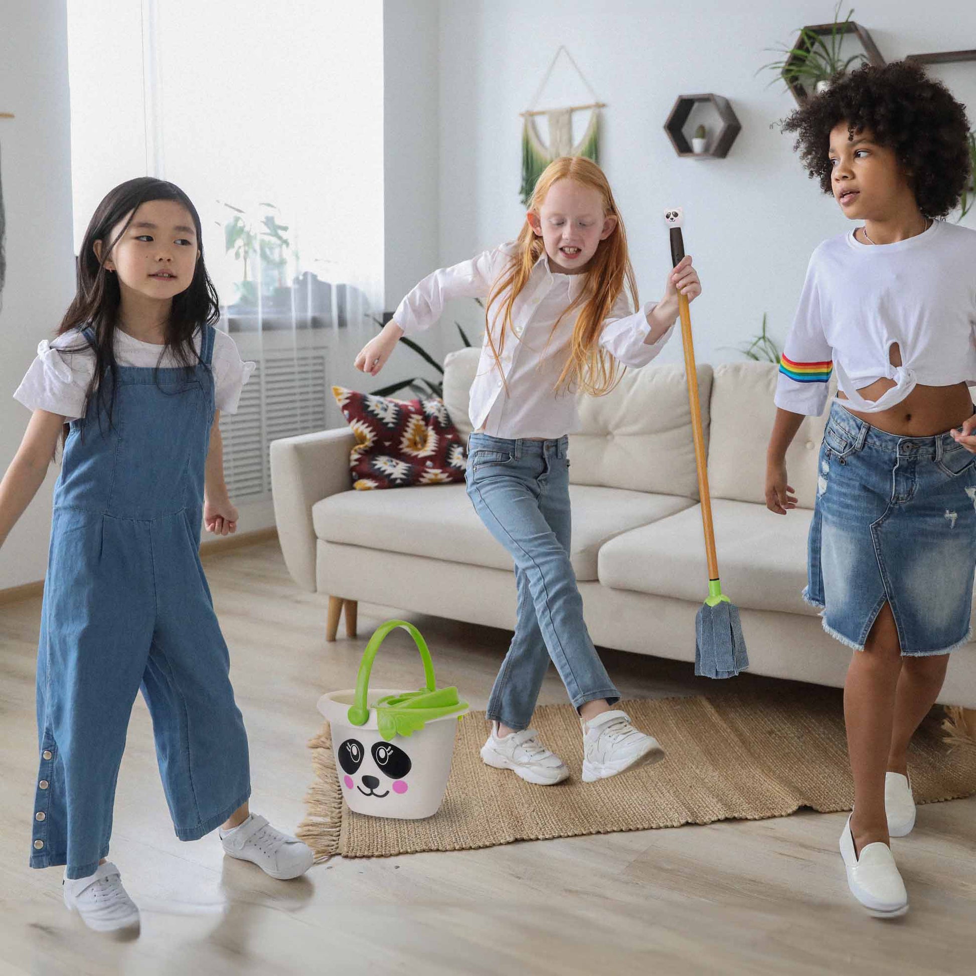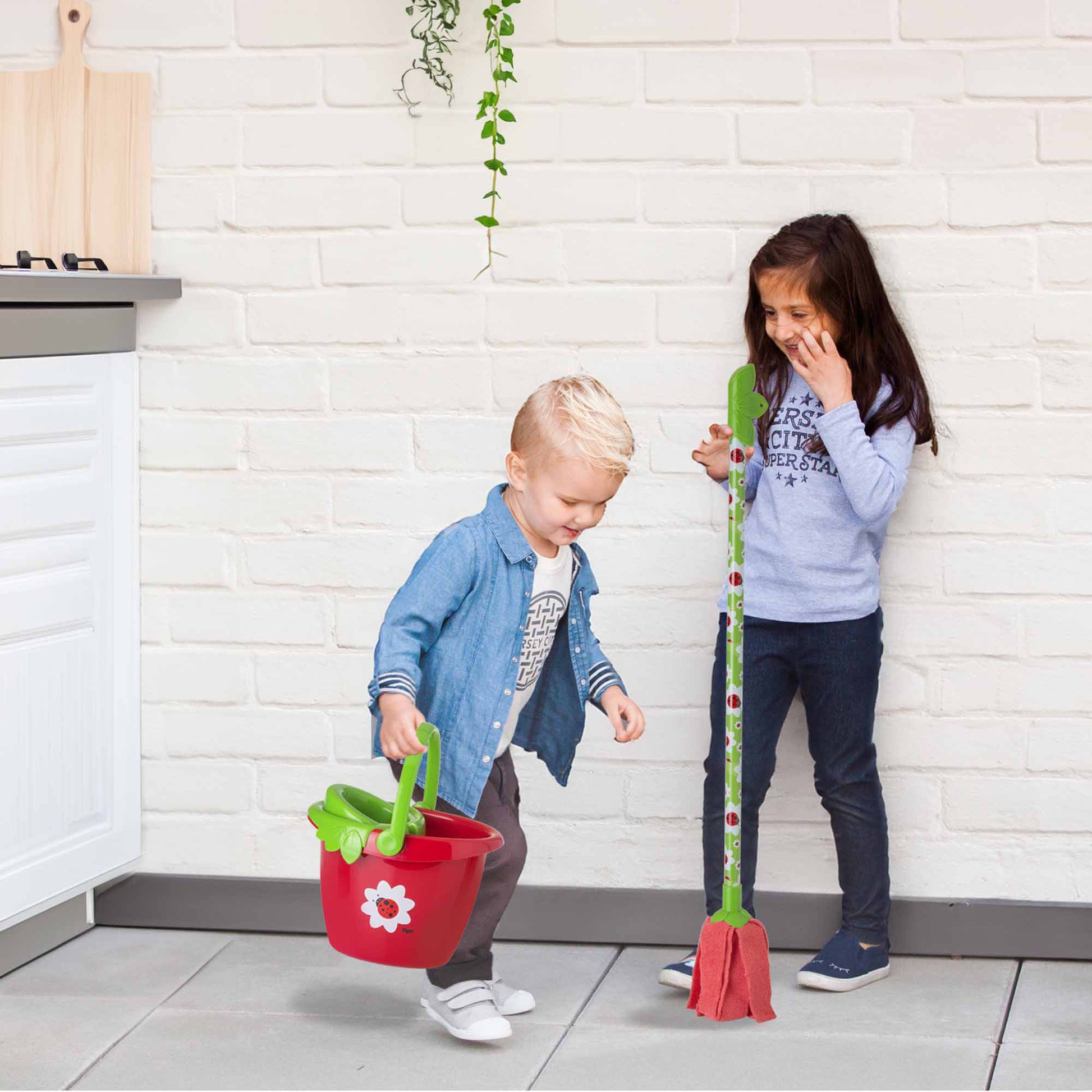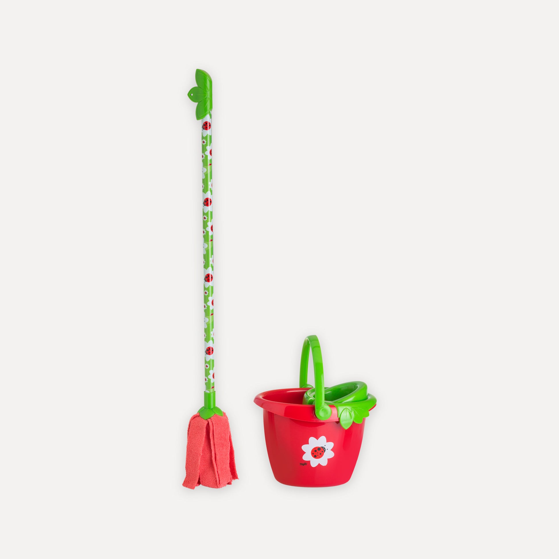 Include un mini mocio e un secchio, progettati appositamente per le mani dei bambini e realizzati con materiali sicuri e resistenti. Il design colorato e attraente invita i più piccoli a partecipare alle faccende domestiche, insegnando loro in modo divertente l'importanza della pulizia.