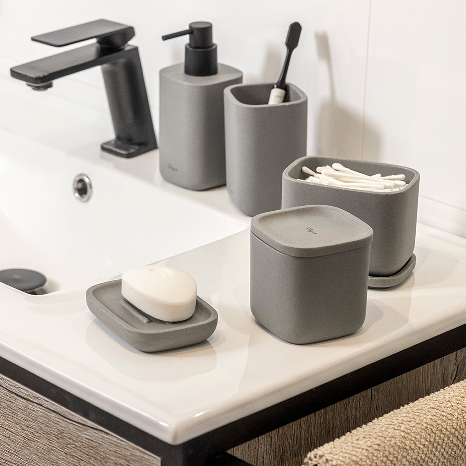 Confeccionado en materiales de alta calidad, este bote es duradero y resistente al agua. Su forma rectangular y su acabado sobrio lo convierten en un complemento perfecto para un baño organizado y decorativo.