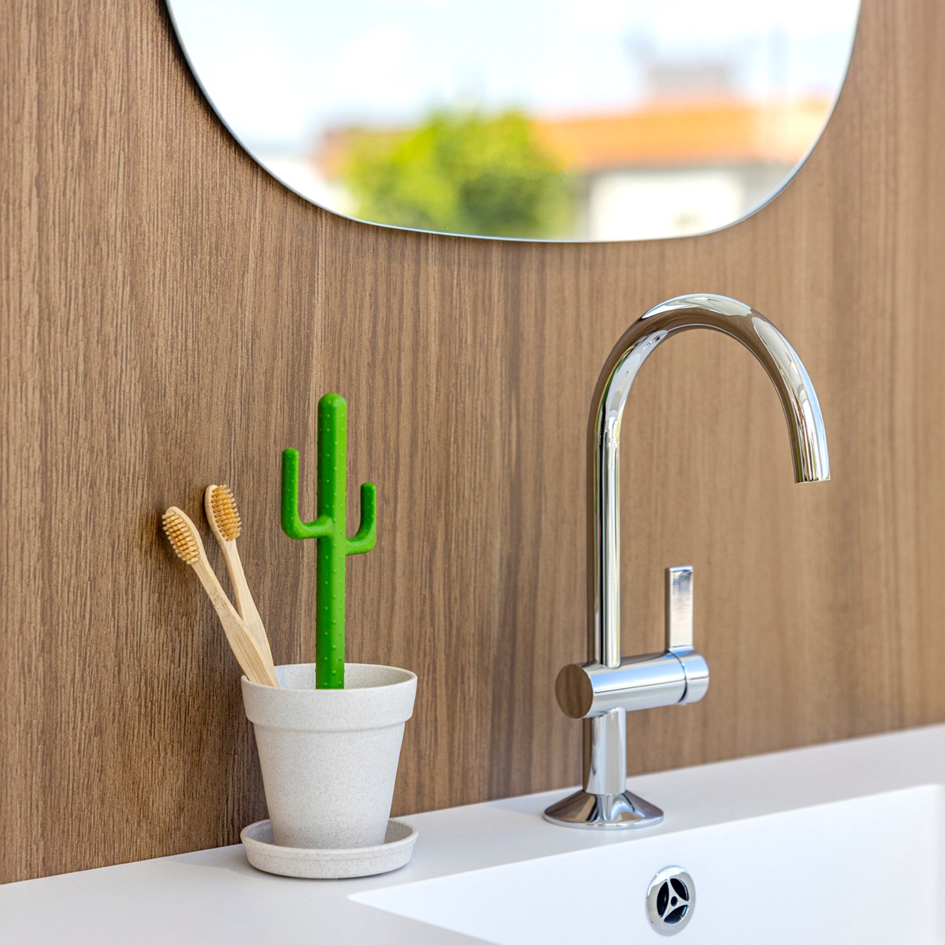Bote para cepillo de dientes sostenible con divertido diseño de cactus, ideal para aportar un toque decorativo y funcional al baño. Fabricado con materiales ecológicos y duraderos, destaca por su forma original y compacta, perfecta para organizar cepillos de dientes sin renunciar al estilo. Su estructura ergonómica y respetuosa con el medio ambiente convierte cualquier rutina de higiene en una experiencia más consciente.