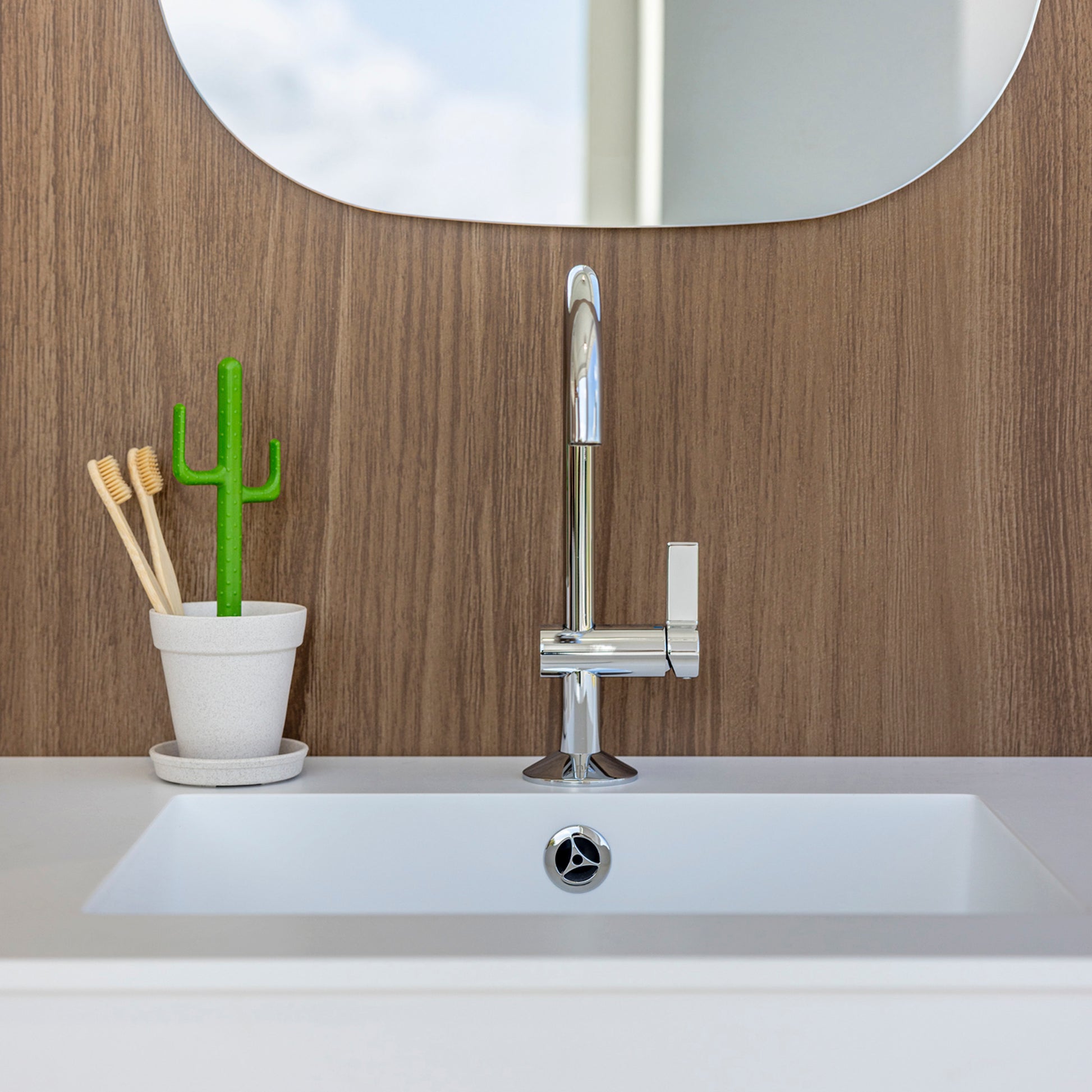 - Diseño único en forma de cactus que añade personalidad al baño.