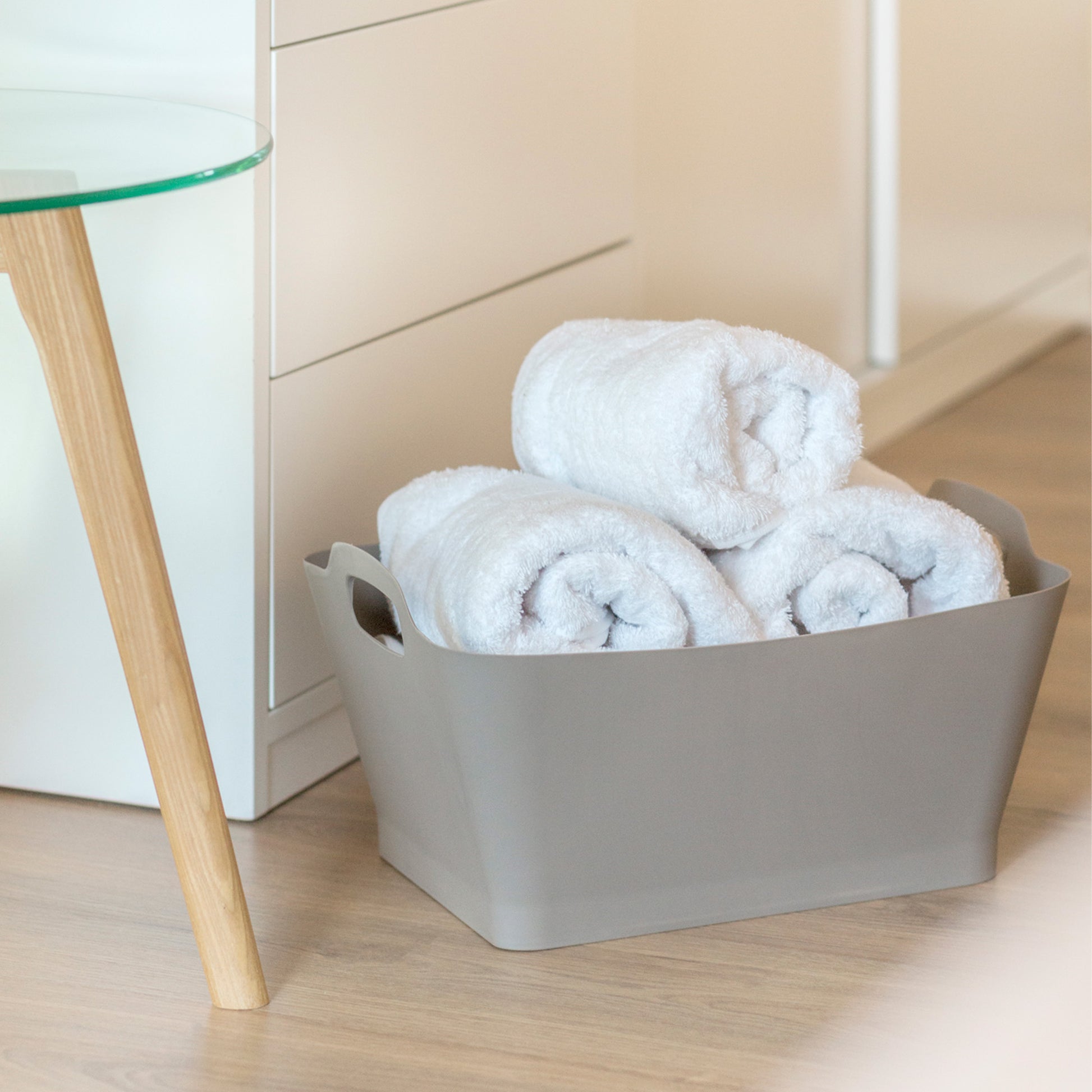 - Práctico cesto rectangular multiusos, ideal para el uso en la cocina, colada o como guardacosas.