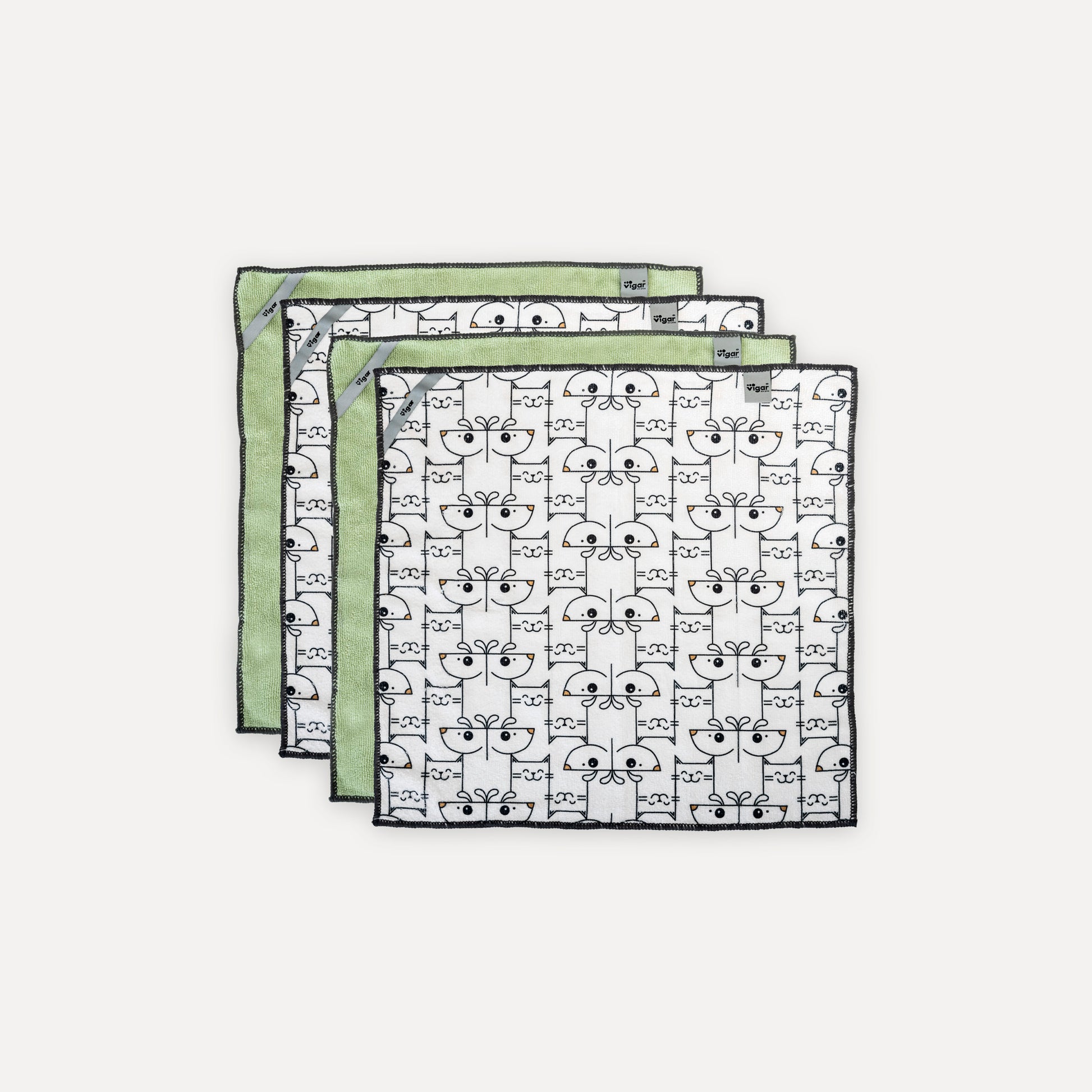 - Incluye 2 bayetas lisas y 2 con estampado decorativo, combinando funcionalidad y estilo.