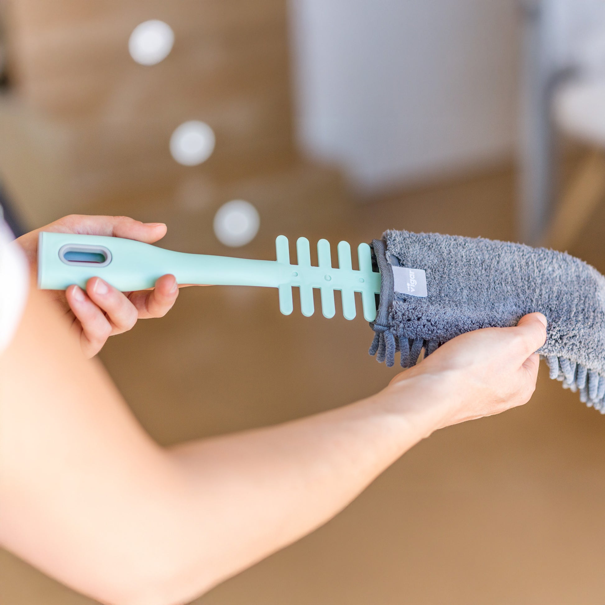 Confeccionado en microfibra suave de alta calidad, este plumero asegura una absorción perfecta del polvo sin dispersarlo. Su estructura ergonómica y su diseño versátil facilitan el alcance de cualquier superficie, ofreciendo una limpieza eficaz y rápida en todo el hogar.