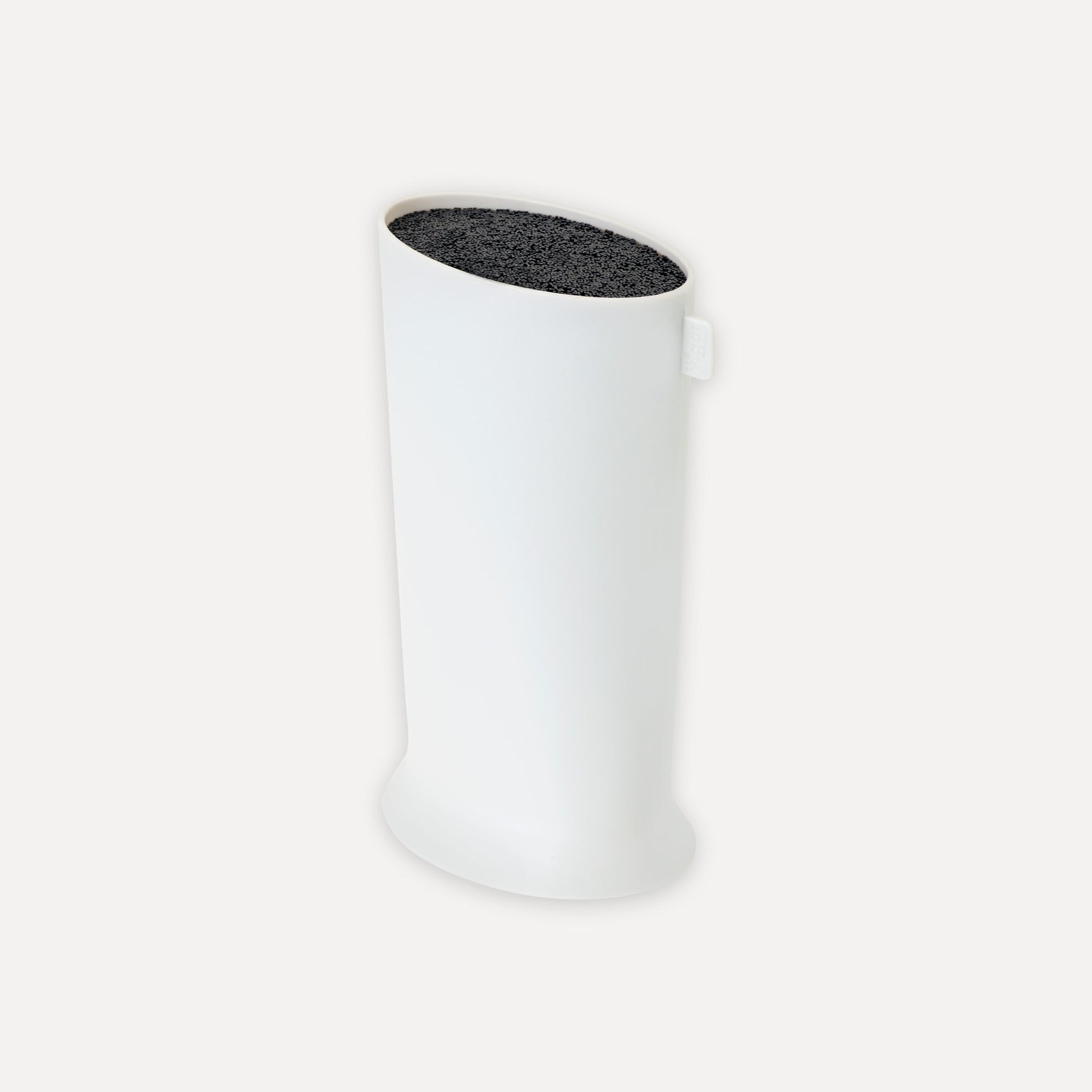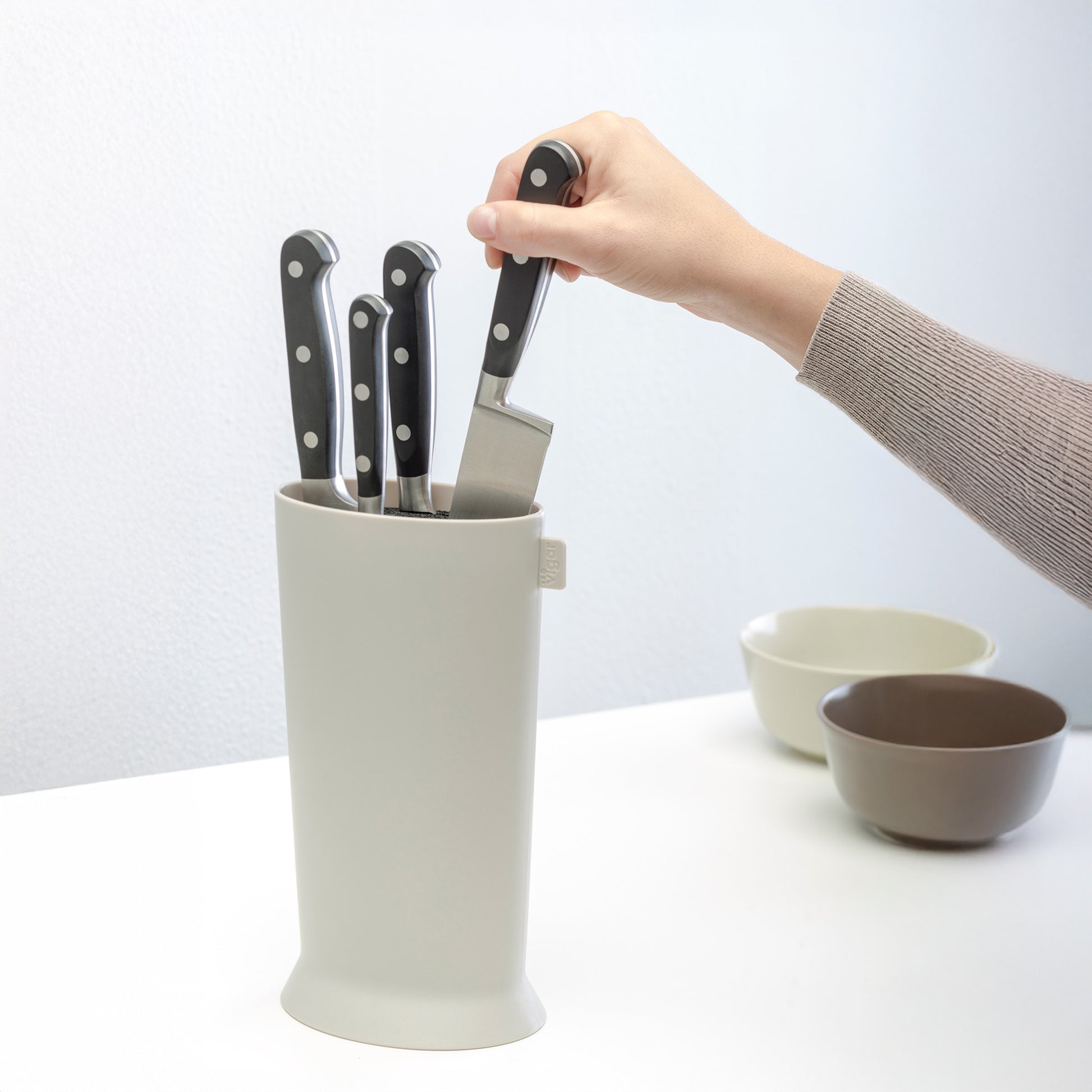 El portacuchillos está fabricado en materiales resistentes que aseguran durabilidad y estabilidad. Su interior cuenta con ranuras flexibles que se adaptan a cuchillos de diferentes tamaños, manteniéndolos bien organizados y protegidos de daños. Ideal para cualquier cocina moderna, este portacuchillos combina practicidad con un diseño contemporáneo.