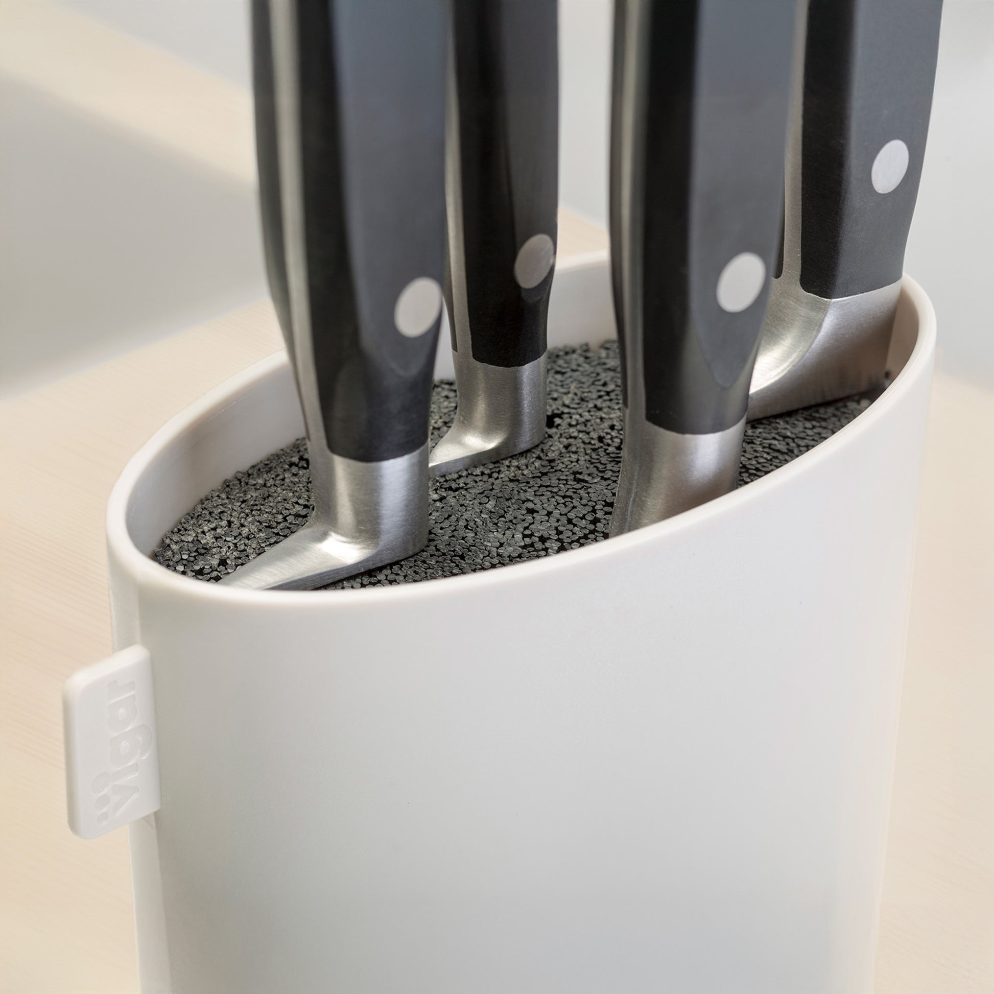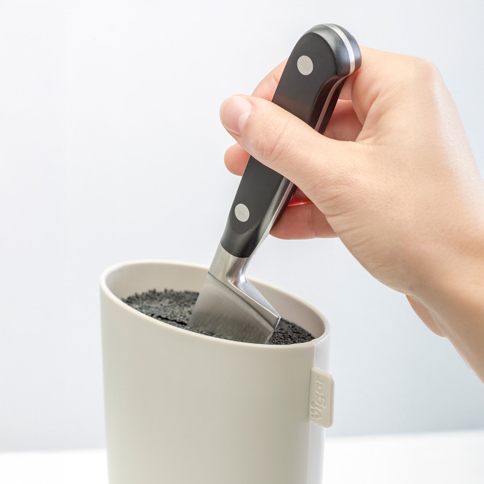 - Sus cerdas evitan que se desafilen los cuchillos, protegiendo sus hojas para un uso prolongado.