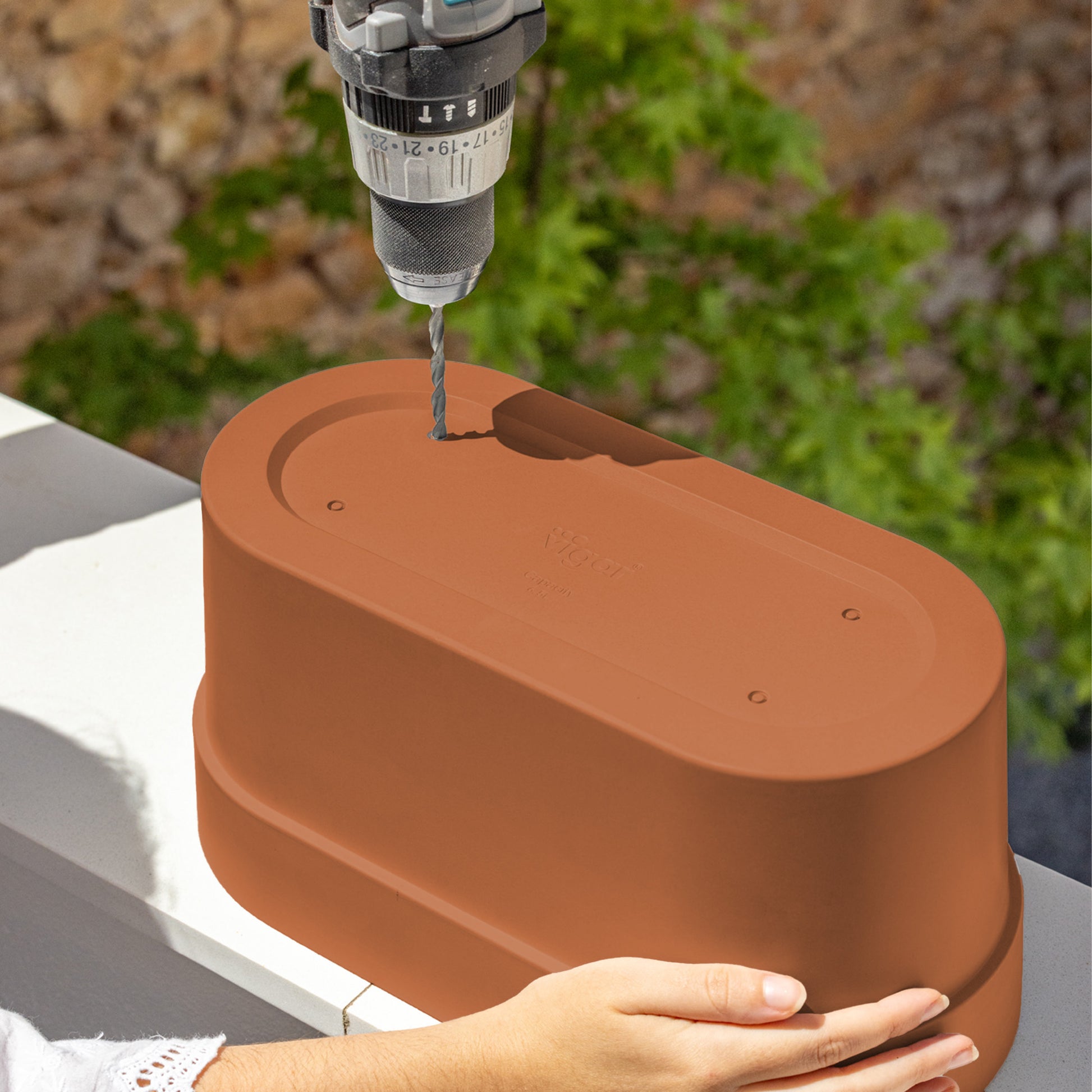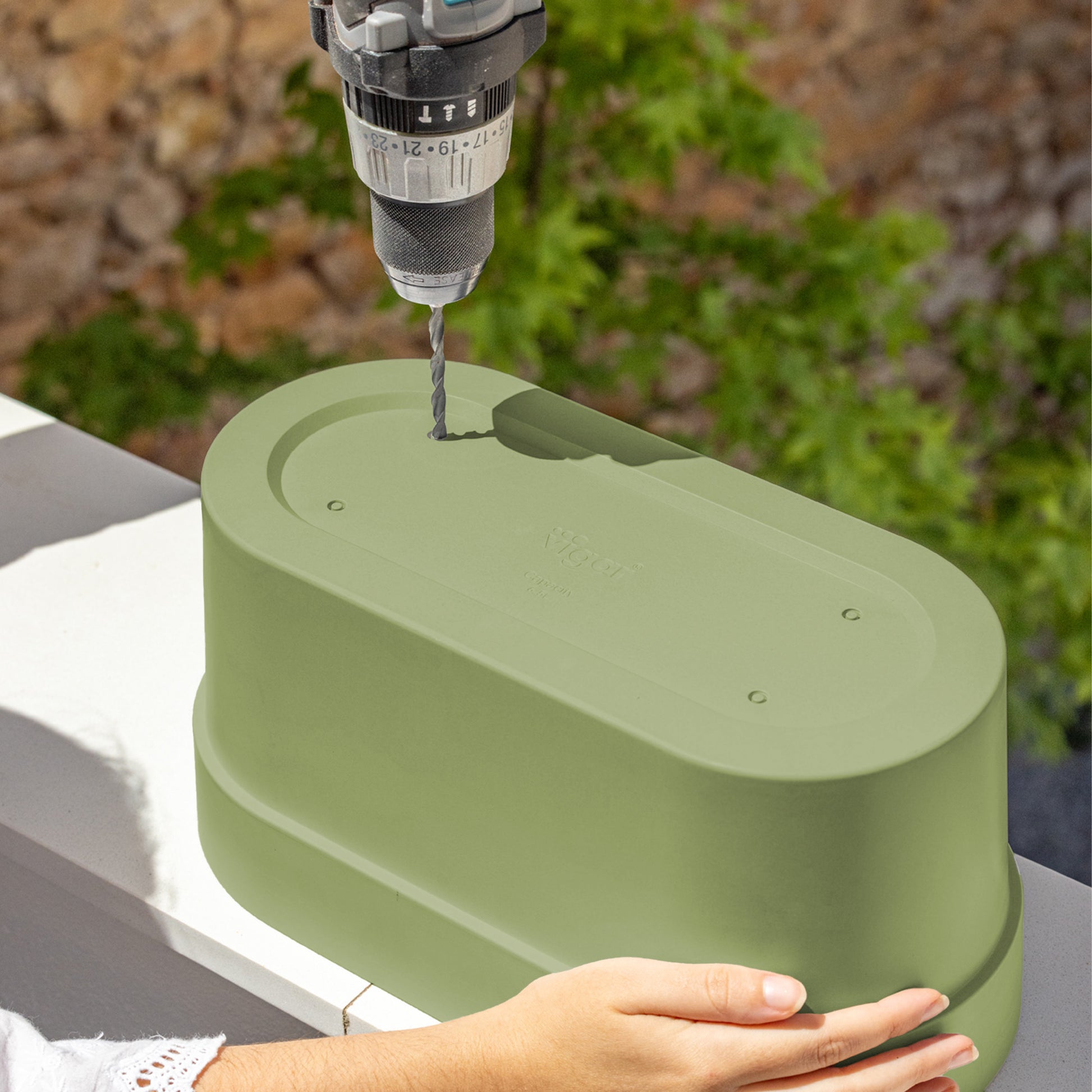 - Diseño apilable con agujeros pre-cortados para drenaje.