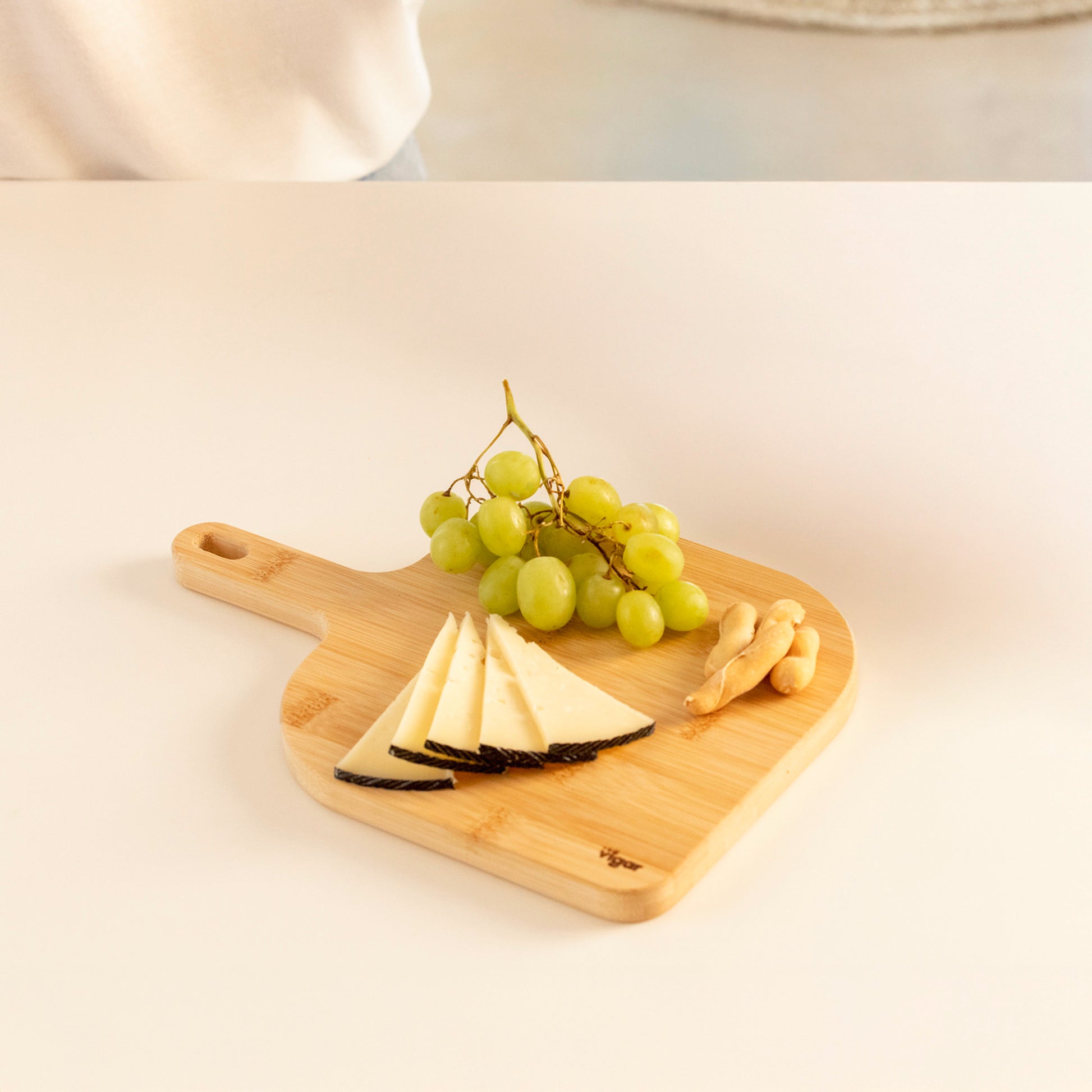 - Tabla de servir mediana Becco de 30 x 20 cm, fabricada en bambú natural, resistente y sostenible.