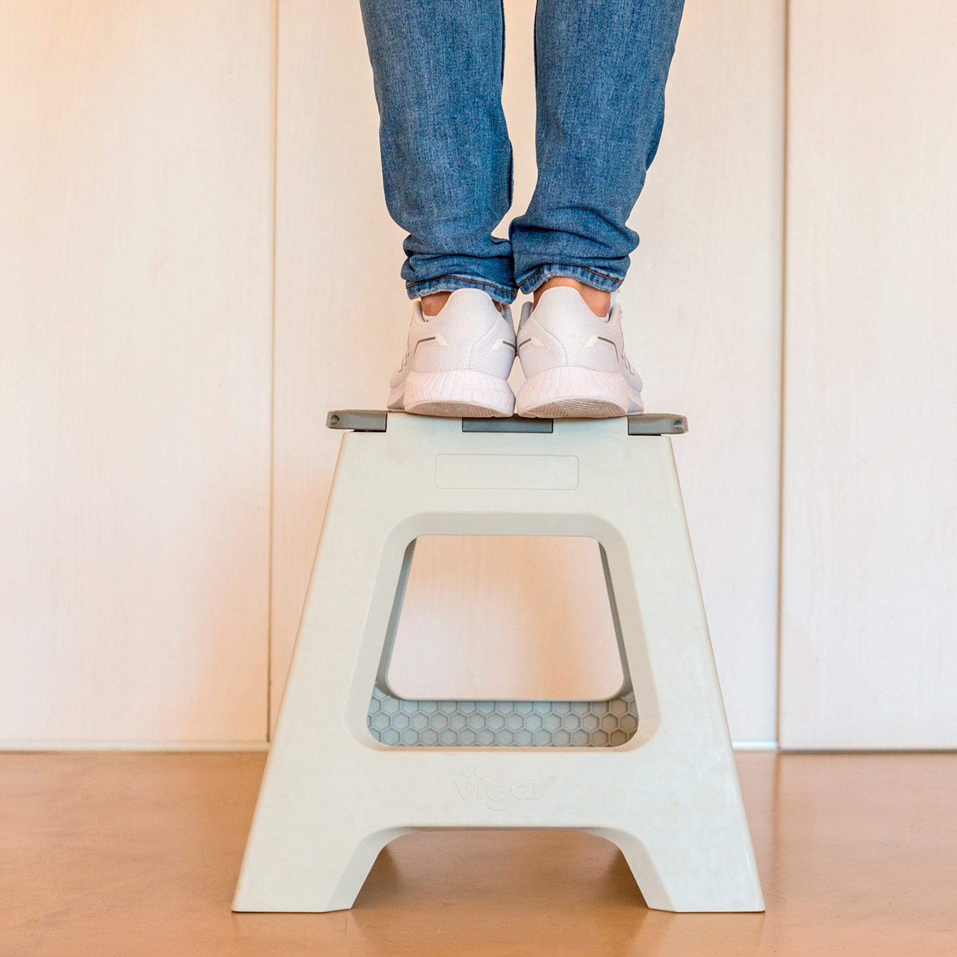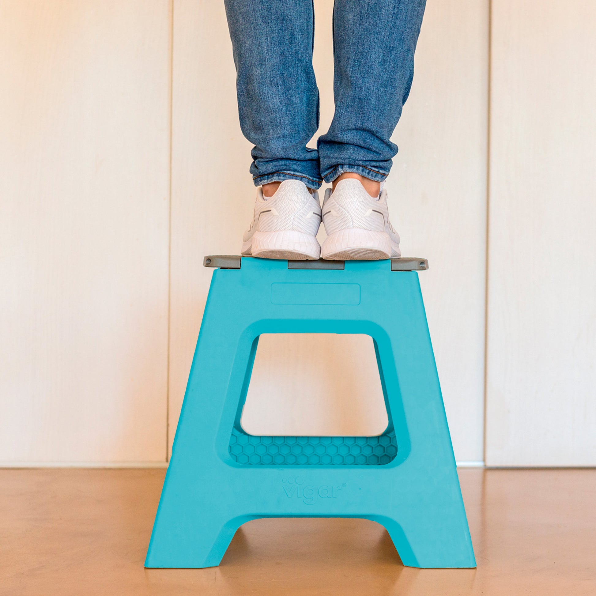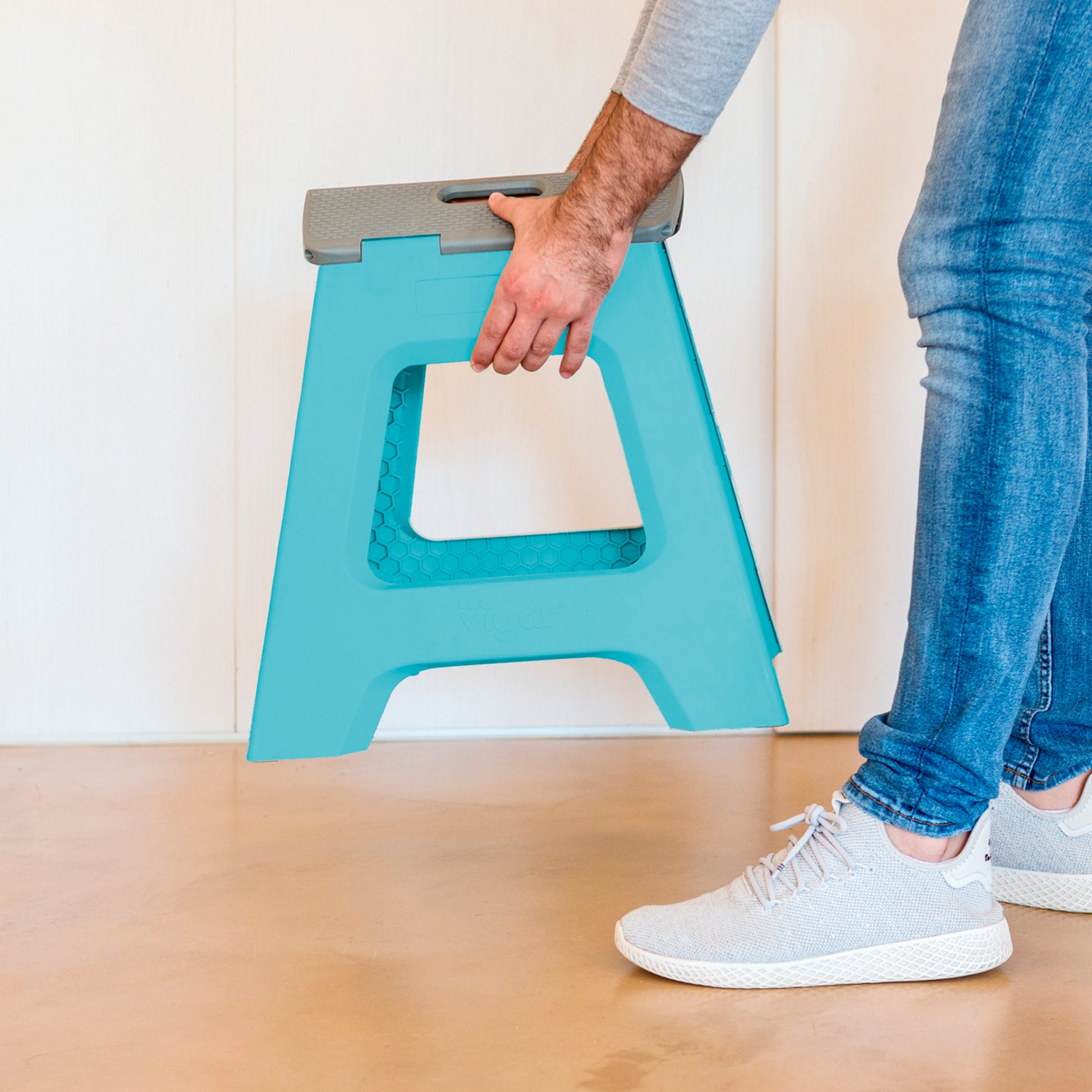 - Taburete plegable de 40 cm de diseño, ideal para acceder a pequeñas alturas de tu hogar de manera segura.