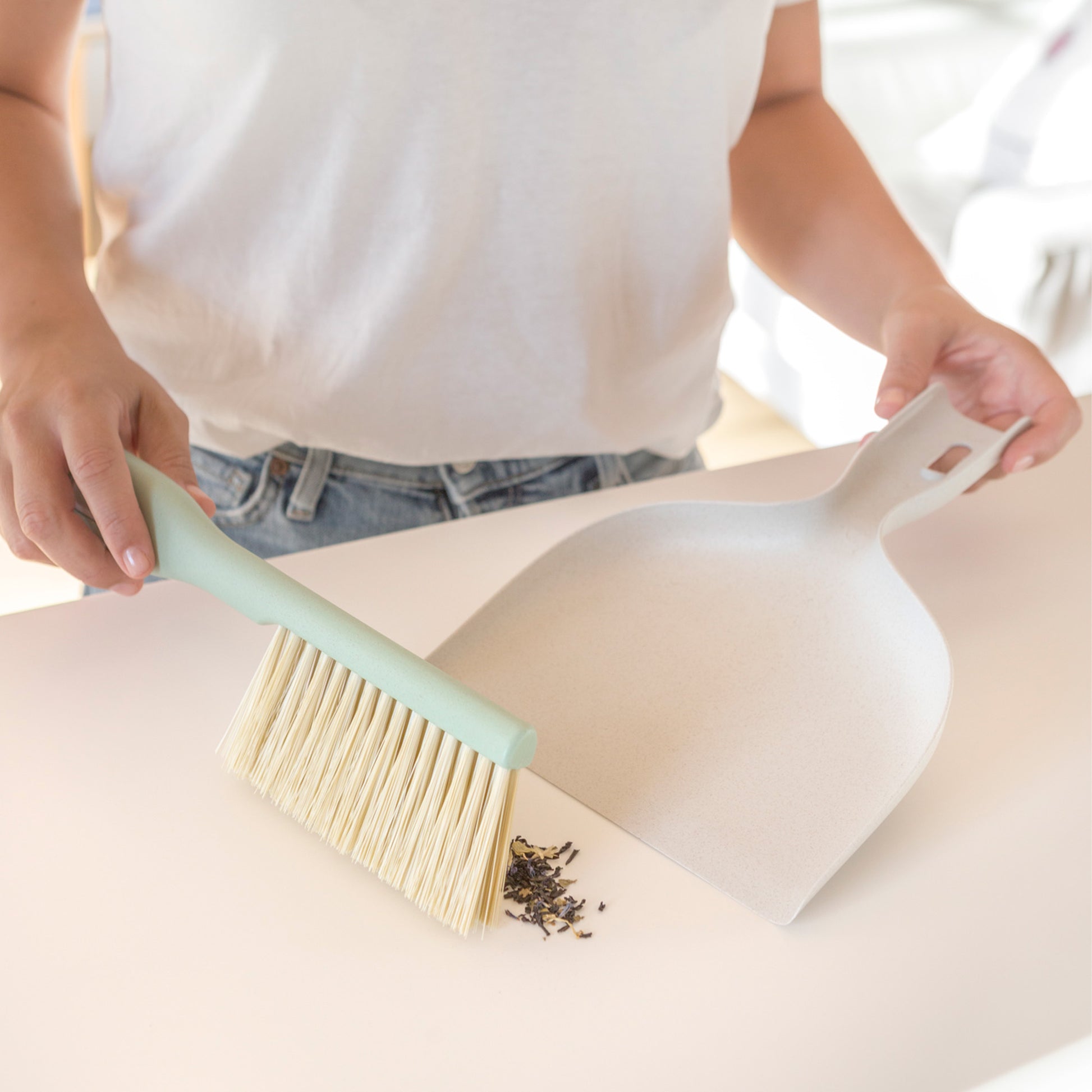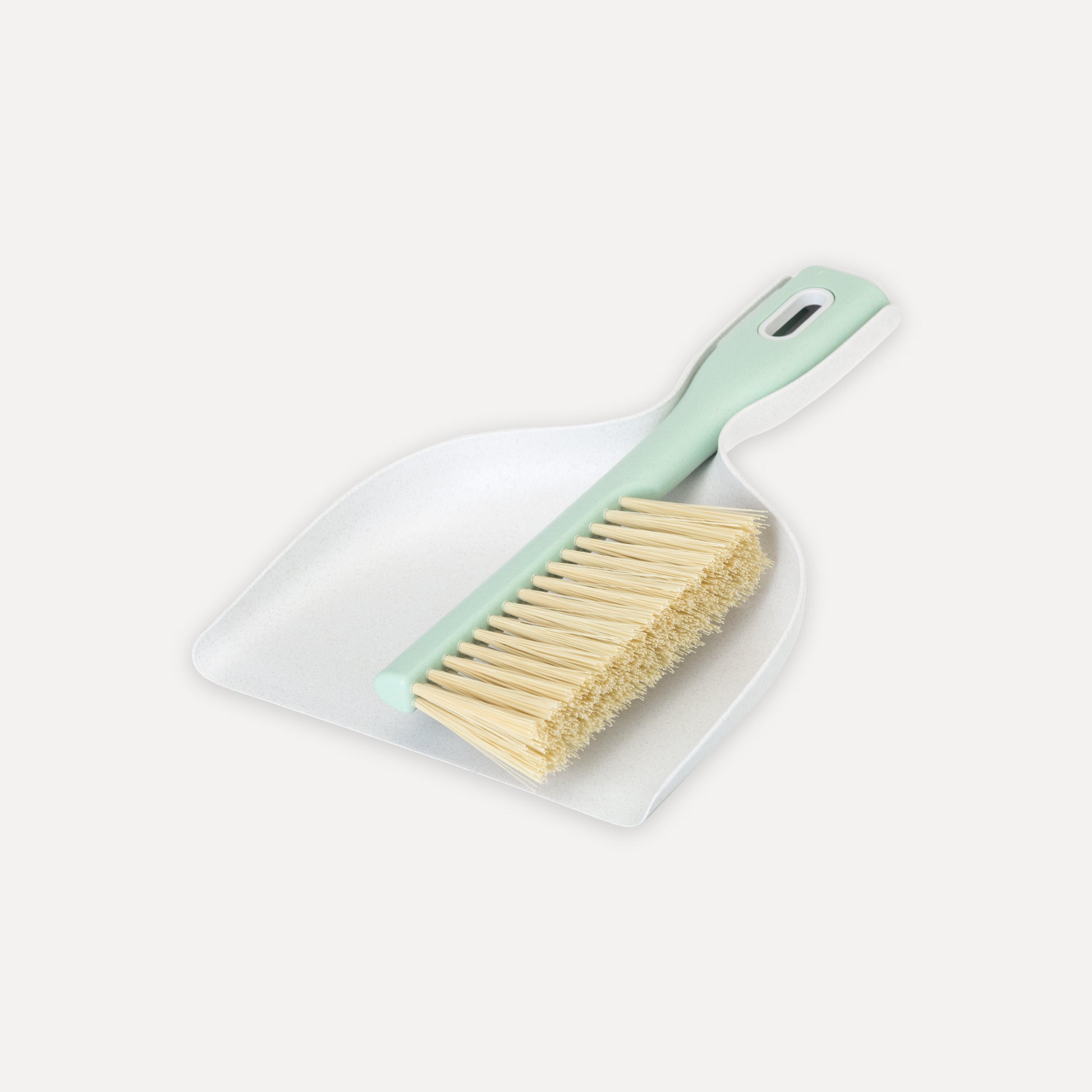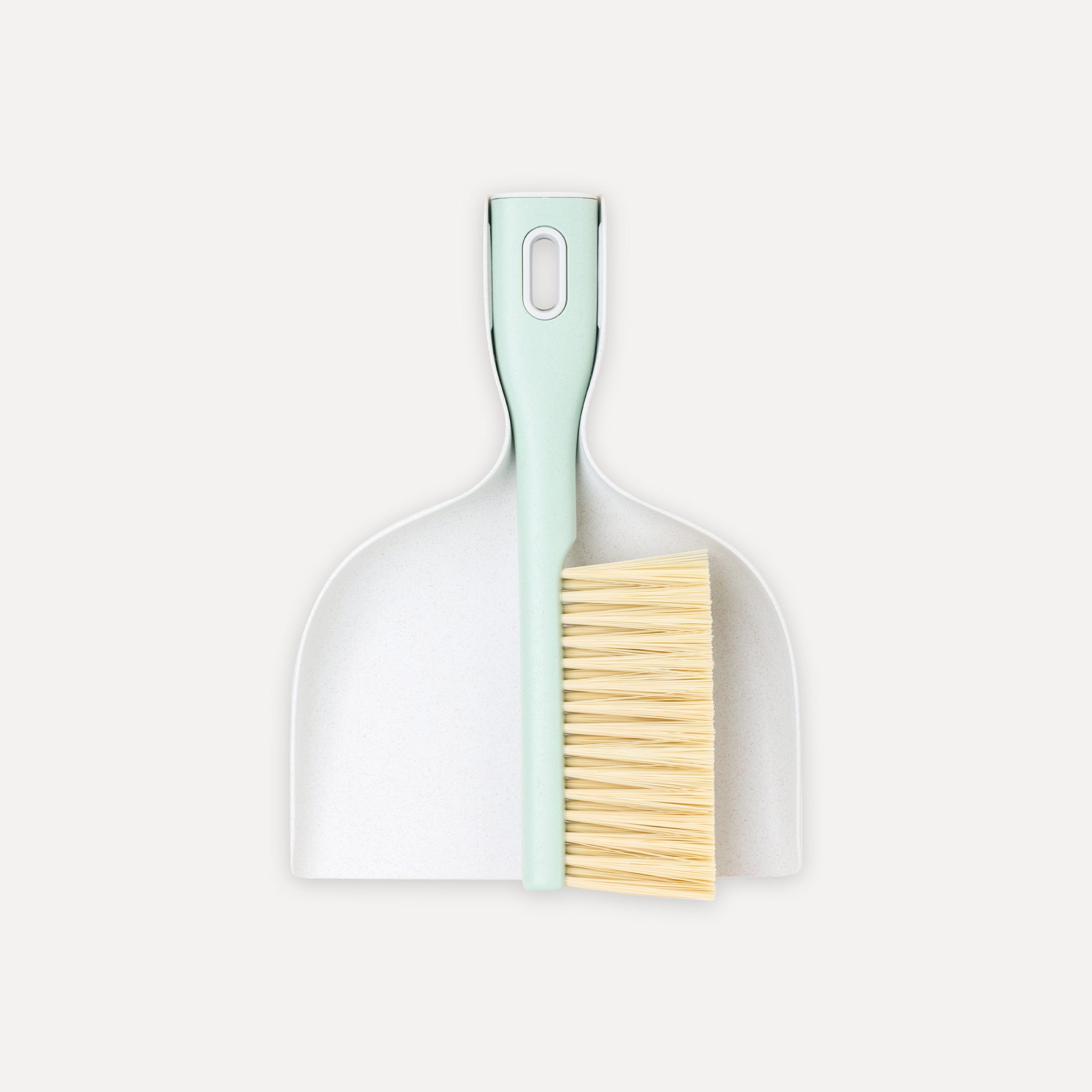 A vassoura possui cerdas flexíveis mas resistentes, que apanham a sujidade facilmente, enquanto a pá tem uma borda de borracha que assegura uma varredura sem esforço. Ambos os componentes montam-se de forma compacta para facilitar o armazenamento, sendo uma opção prática e elegante para o uso diário.