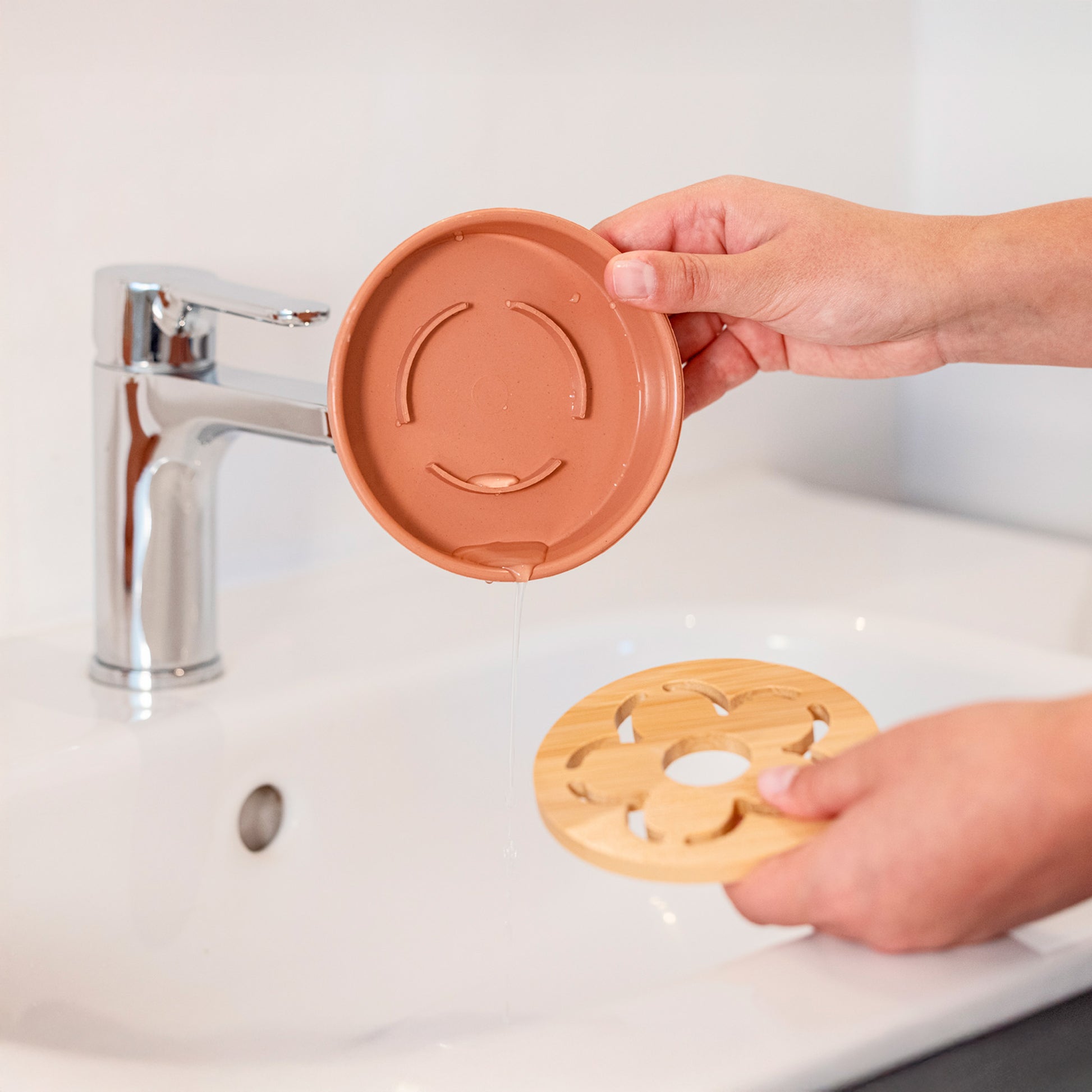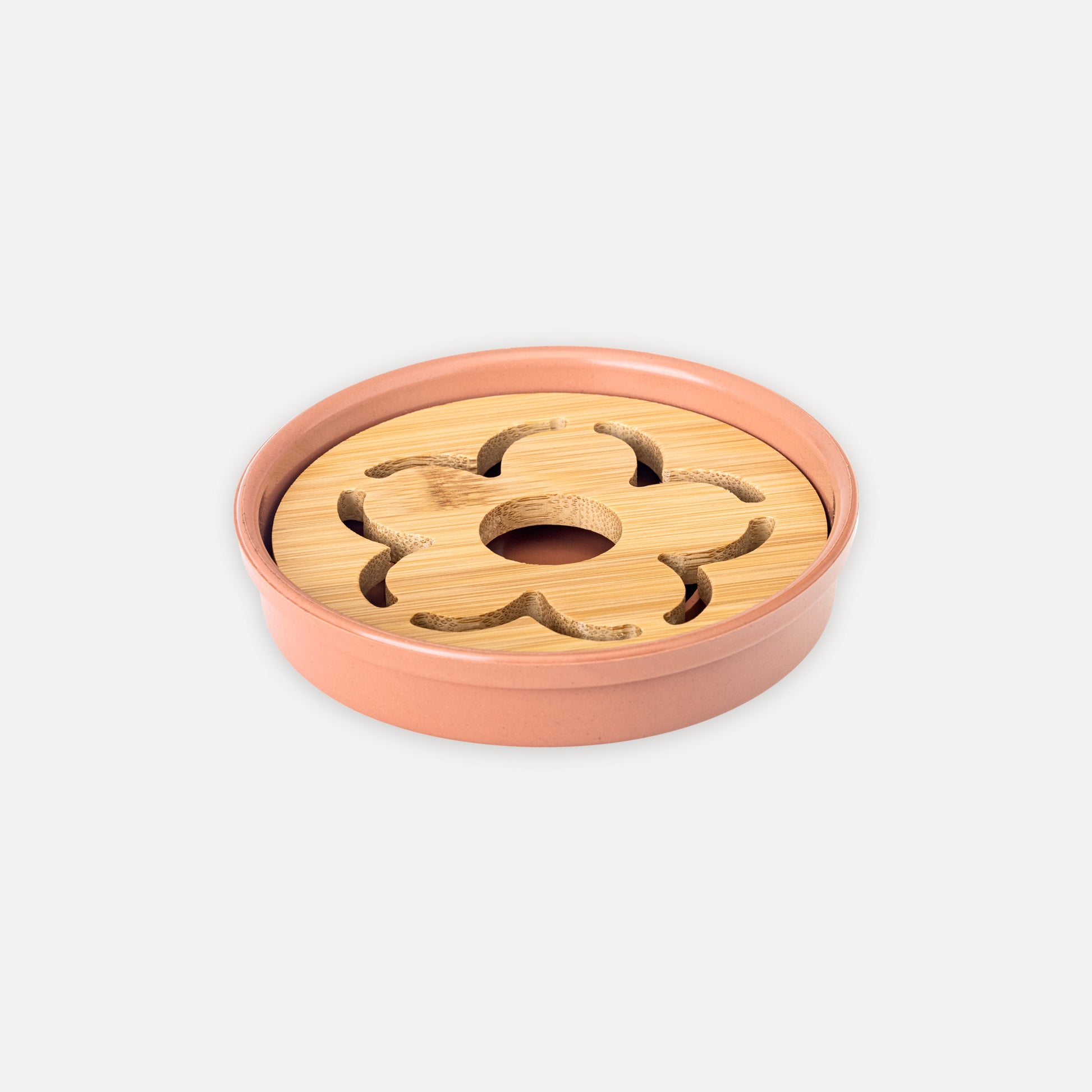 - Forma de flor que mantém o sabão em perfeitas condições, evitando acumulação de água.