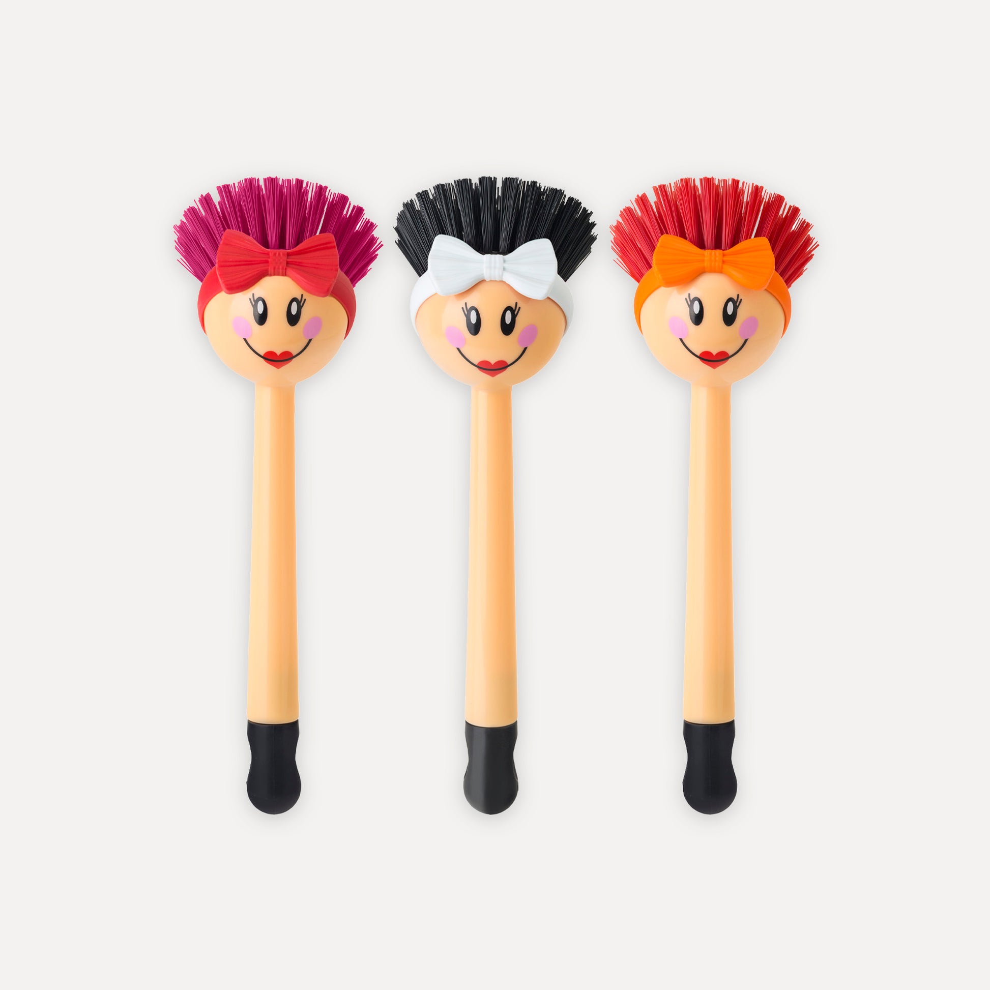 - Haz de la limpieza algo divertido con el pack de 3 cepillos lavaplatos Dolls Beauties: funcionales, coloridos y con diseño que encanta a primera vista.