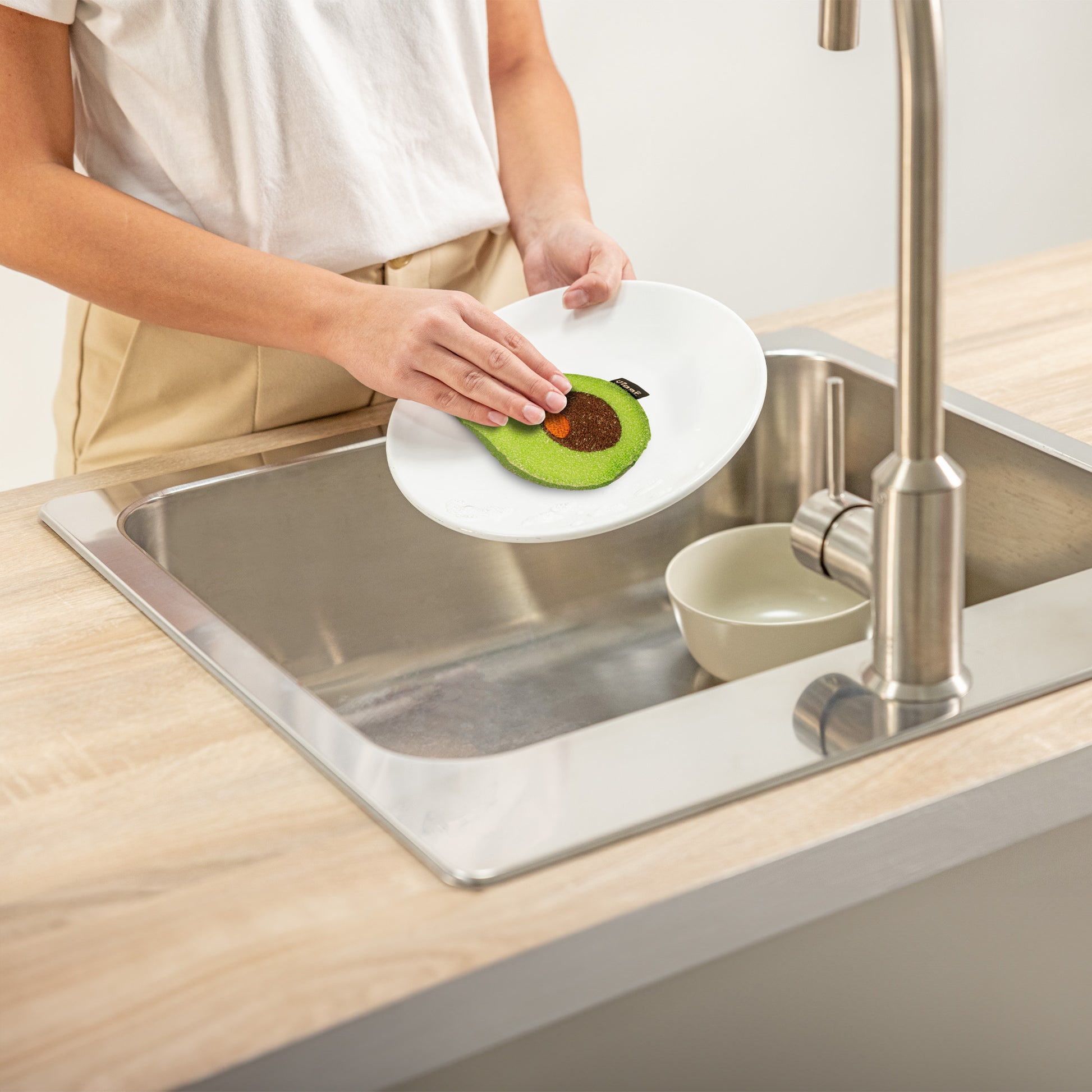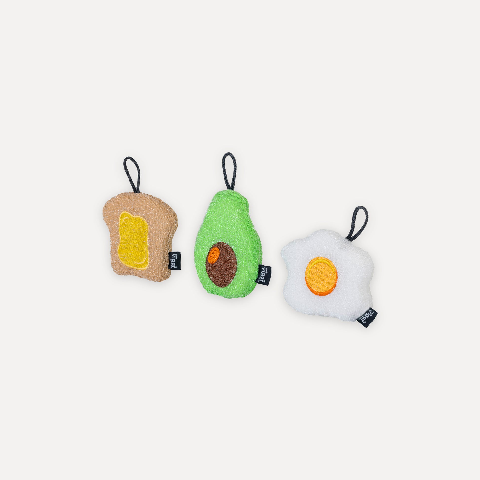 - Dale alegría a tu fregadero con este pack de 3 esponjas Fresh con diseños de desayuno: aguacate, tostada y huevo frito.