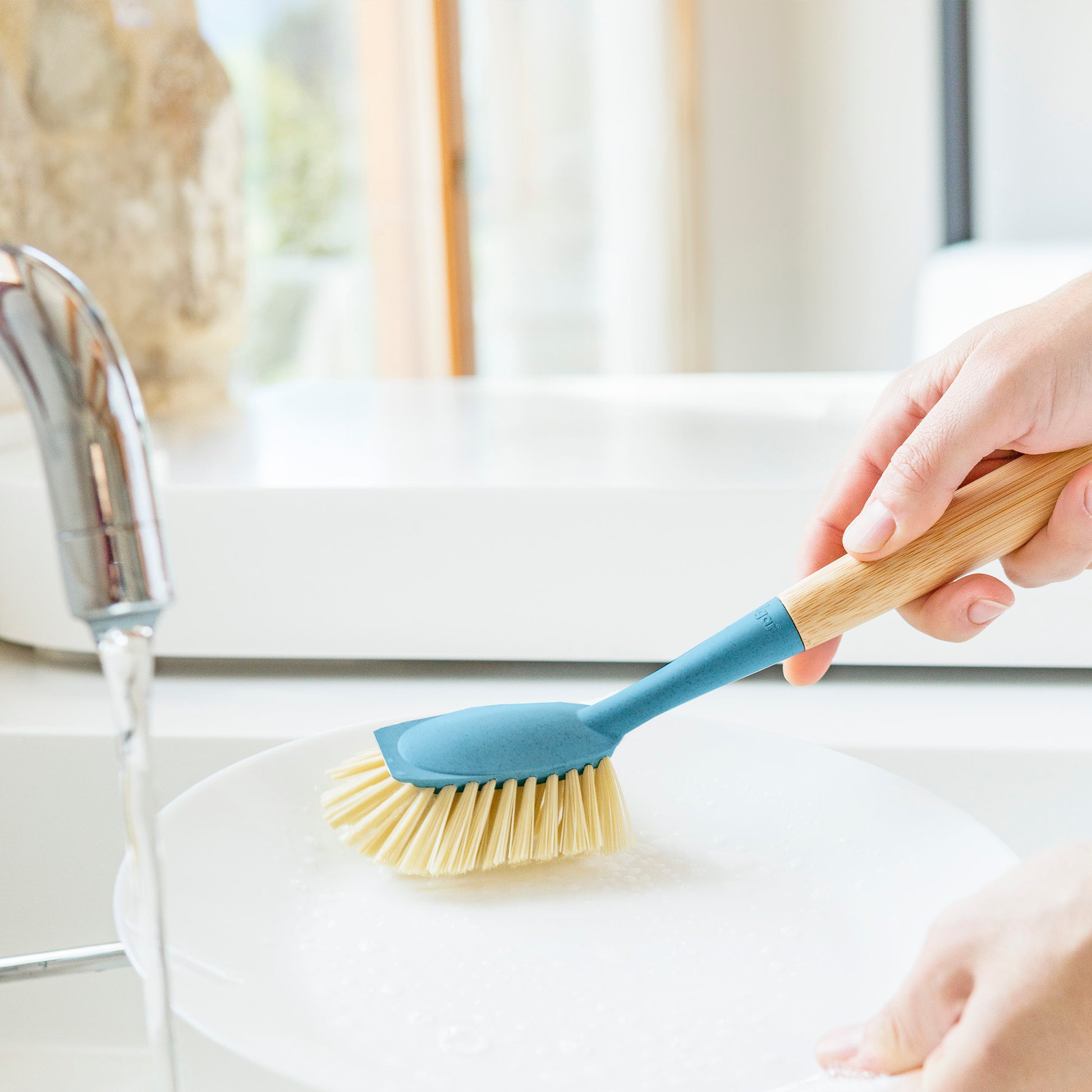 - Cerdas de nailon duraderas que no rayan, ideales para vajilla, utensilios de cocina e incluso horno.