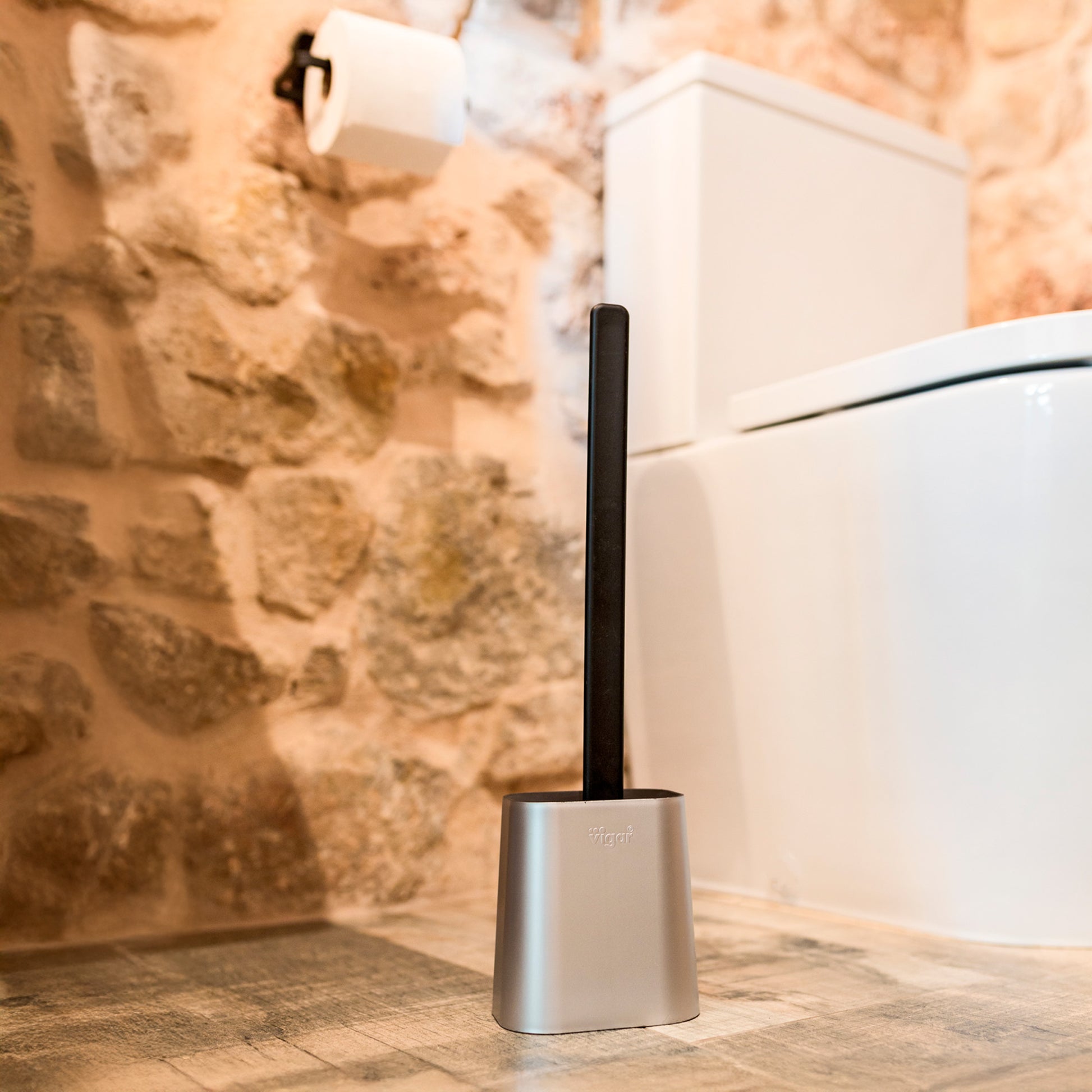 - Conjunto de casa de banho composto por escova e porta-escova eco-desenhados para maior eficácia de limpeza e durabilidade.